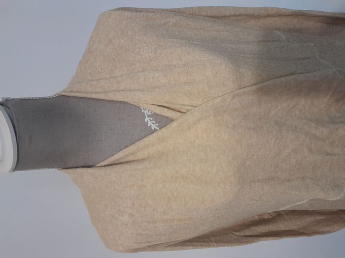 Gilet, asymétrique, sans bouton, manche longue Longueur : 70cm Aiss / Aiss : 52cm Matière : 40 % Viscose, 30 % Angora, 30 % Laine Marque : Made in Italy