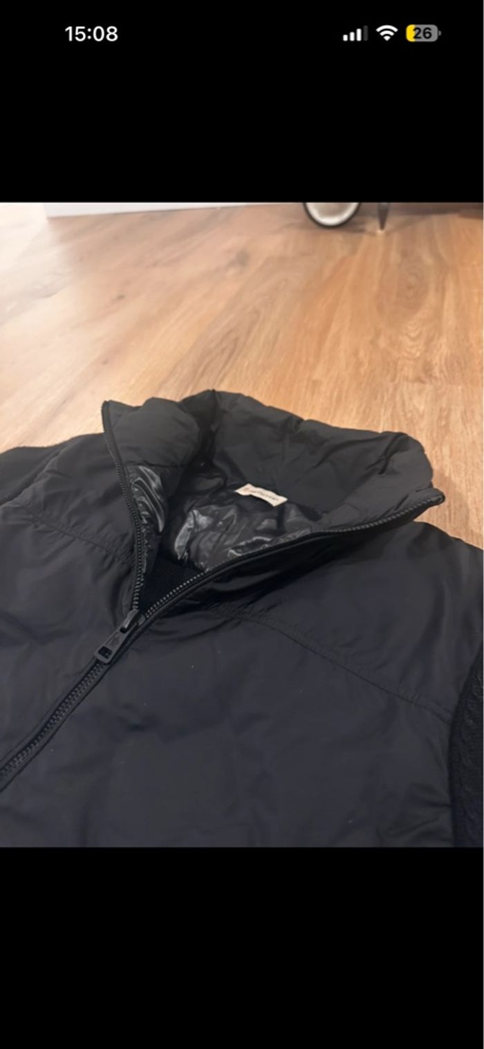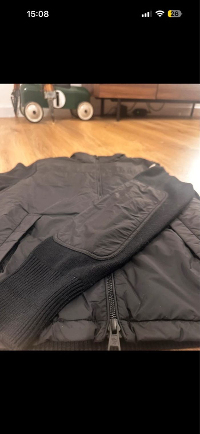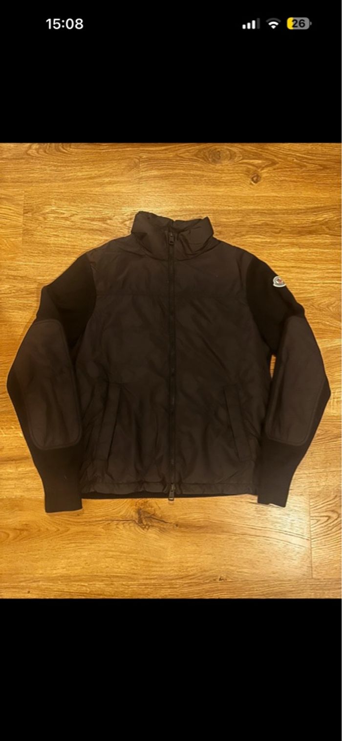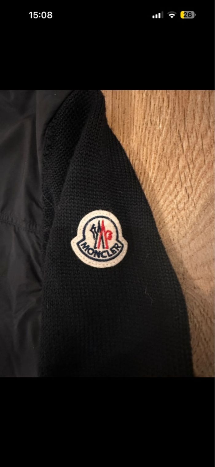 Cardigan Moncler, coloris noir, taille M, comme neuf, aucun défaut à déplorer.