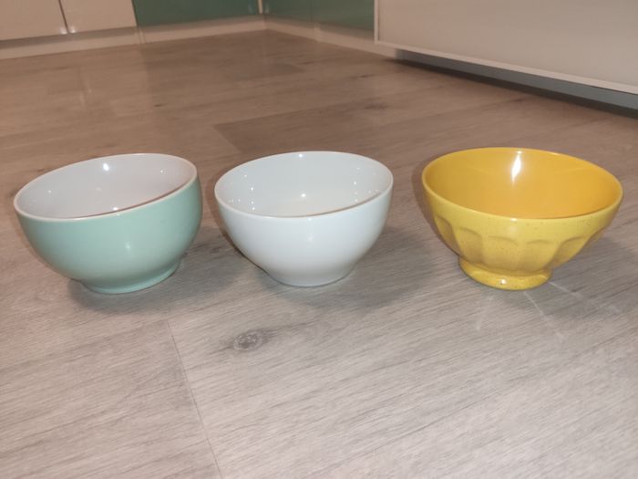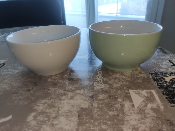 Les micro rayures étaient déjà présentes au moment de l'achat (bols entreposés les uns sur les autres dans le magasin) Le bol vert mesure 8 cm de haut et 13,5 cm de diamètre Le bol blanc mesure 7 cm de haut et 12,5 cm de diamètre Le bol jaune mesure 7 cm de haut et 13,5 cm de diamètre (quelques micro-rayures intérieures, étaient déjà présentes à l'achat) #bol #vaisselle