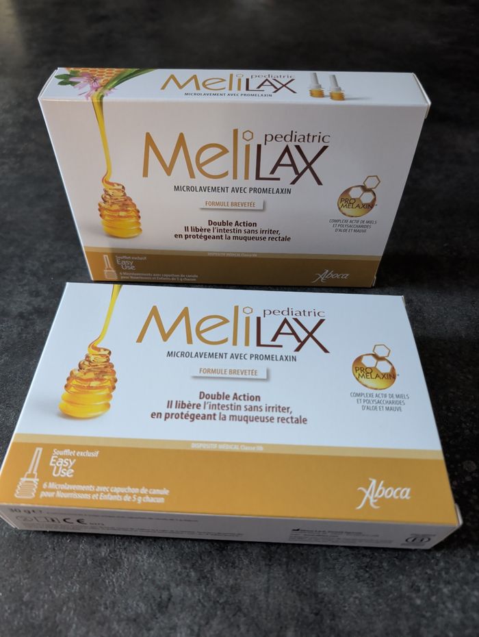 Boite de micro lavement contre la constipation chez les petits, utilisation dès la naissance, 1 boîte complète et 5 unités dans la 2eme boîte valide jusqu'à 07/2027.