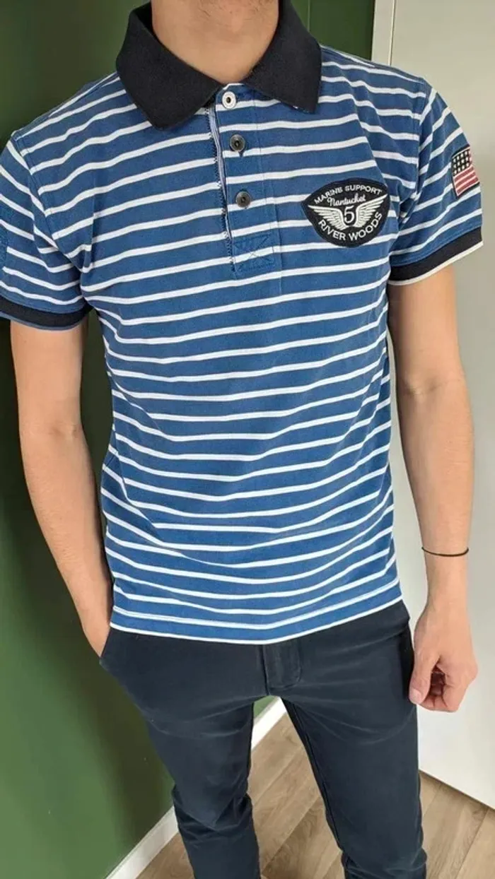 Polo à rayures bleu marine et blanc, River Woods, Taille S