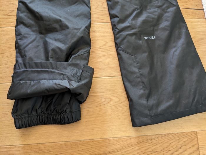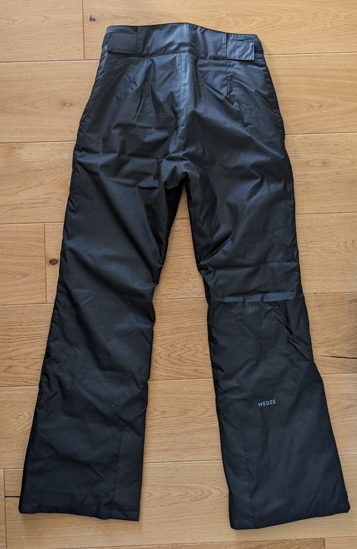 Pantalon de ski/snowboard femme noir déperlant. Taille 36 (S) État quasi neuf (porté une seule fois). Marque Wedze (Decathlon). 2 poches avec fermeture zippée devant. Guêtres élastiquées dans la doublure pour éviter les entrées de neige. Taille semi élastiquée, passants ceinture, passants bretelles.