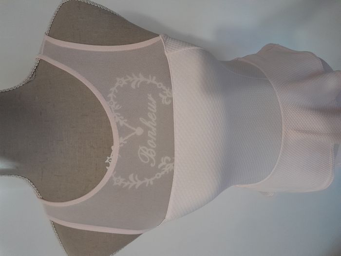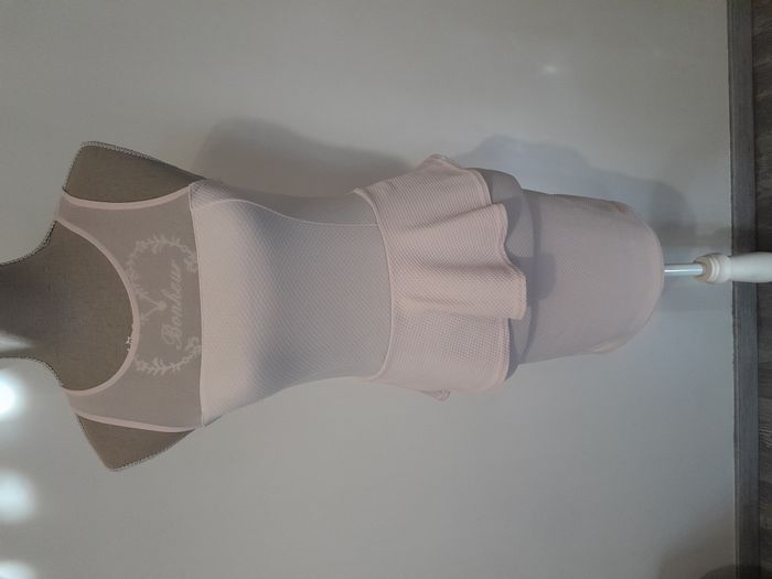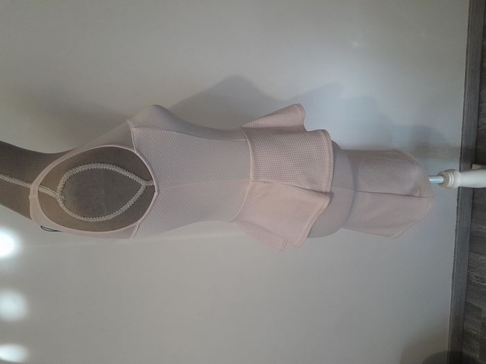 Robe de cérémonie, transparente au dessus de la poitrine, volant au tour de la taille Longueur : 80cm Aiss / Aiss : 34cm Matière : 95 % Polyester, 5 % Elasthanne Marque : Jennyfer