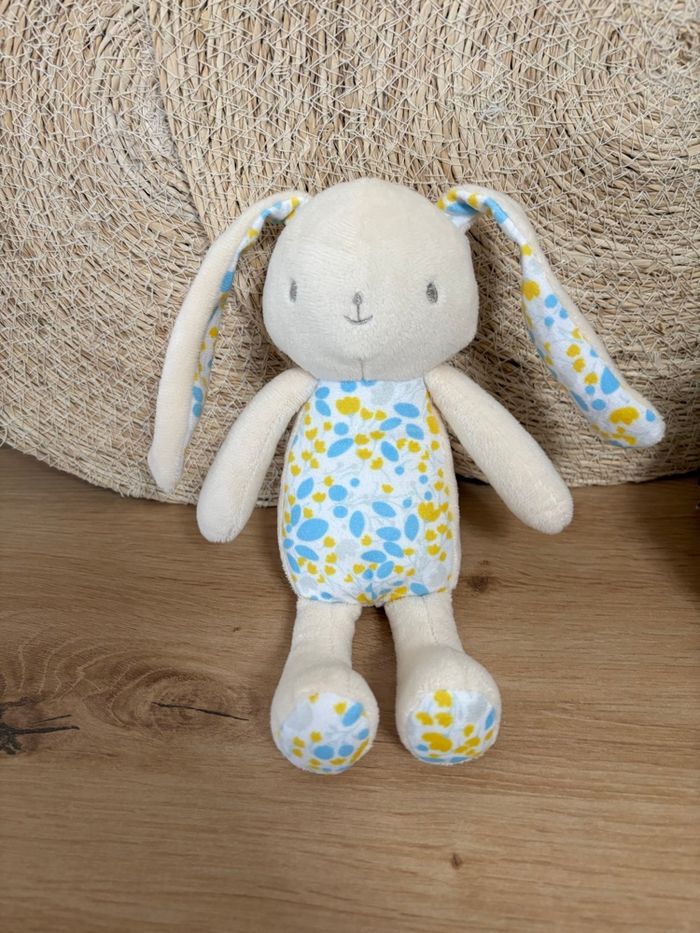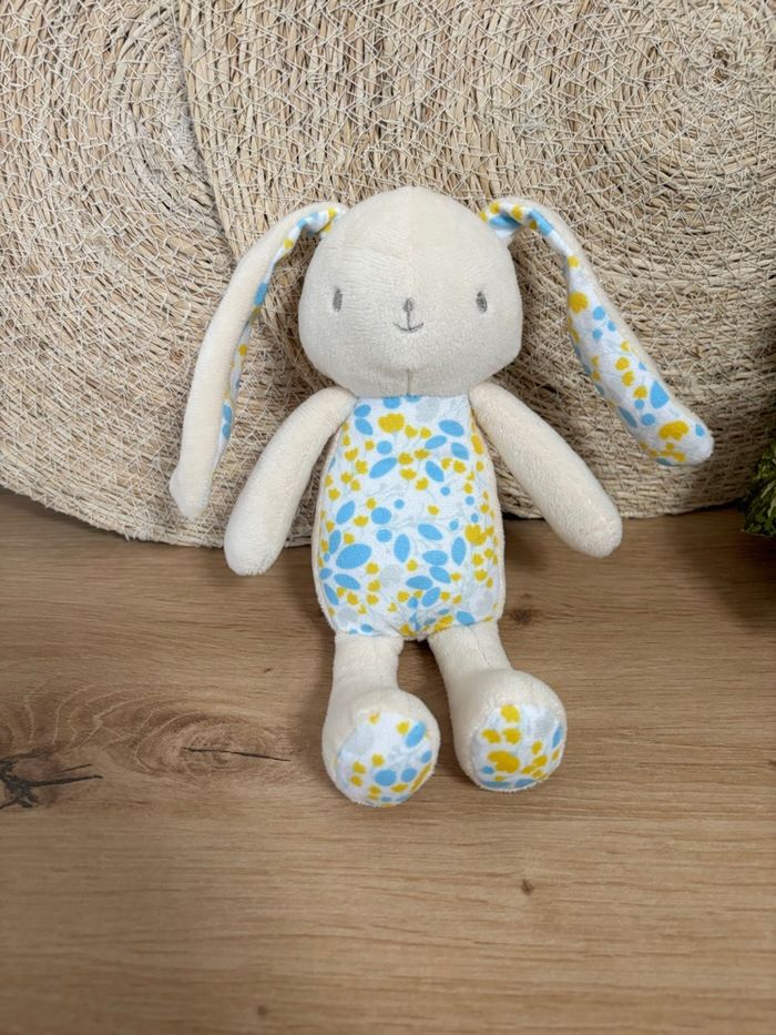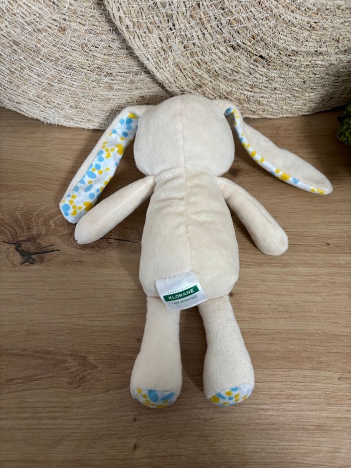 Neuf doudou lapin crème fleurs jaune bleu klorane  - photo numéro 3