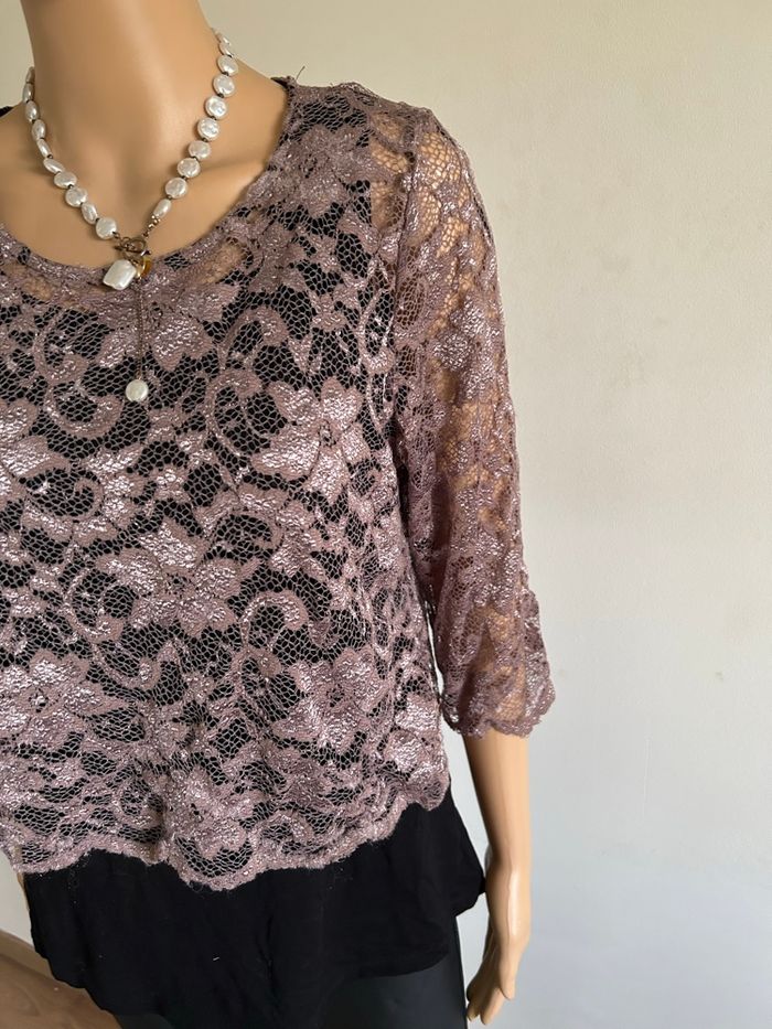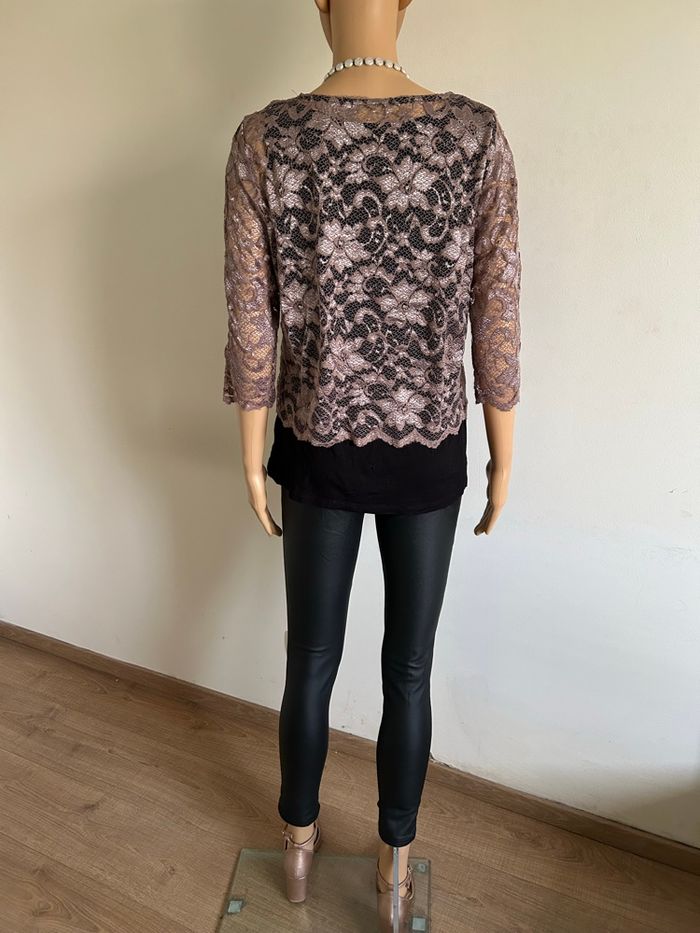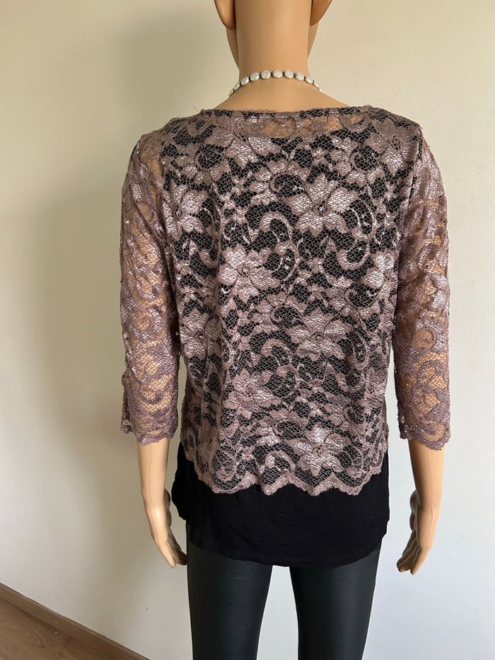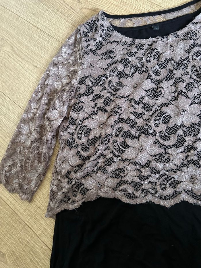 Blouse noire et beige avec dentelle taille 3 bon état  - photo numéro 6