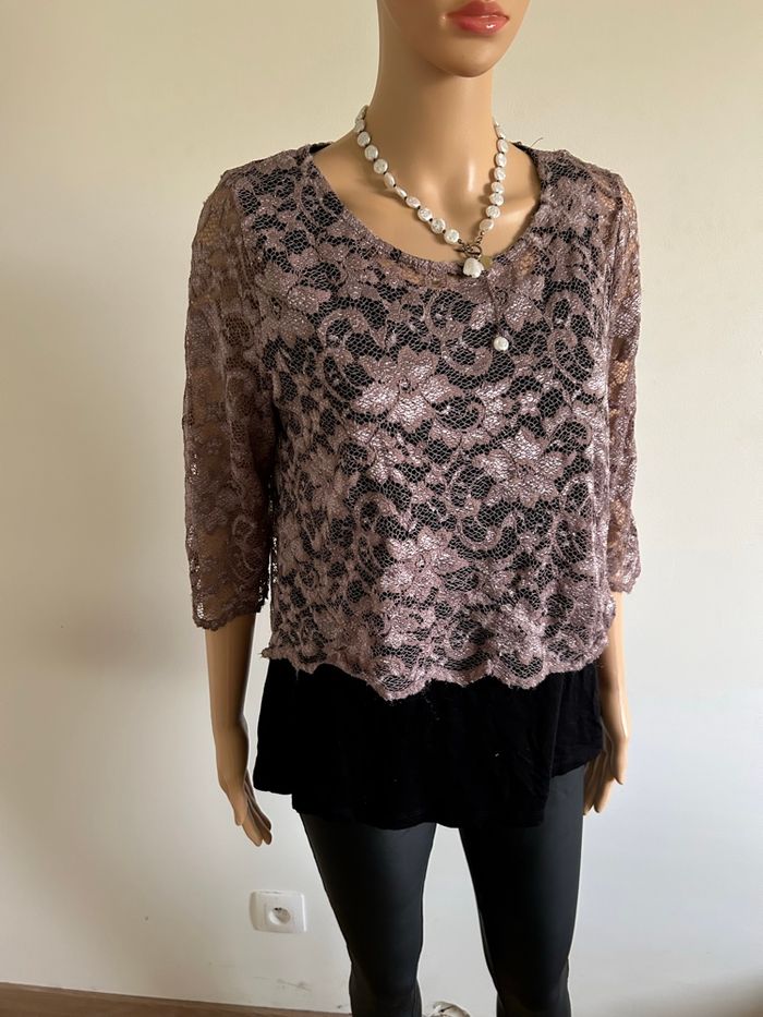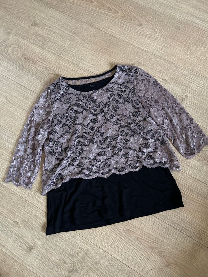 Blouse noire et beige avec dentelle taille 3 bon état  - photo numéro 1