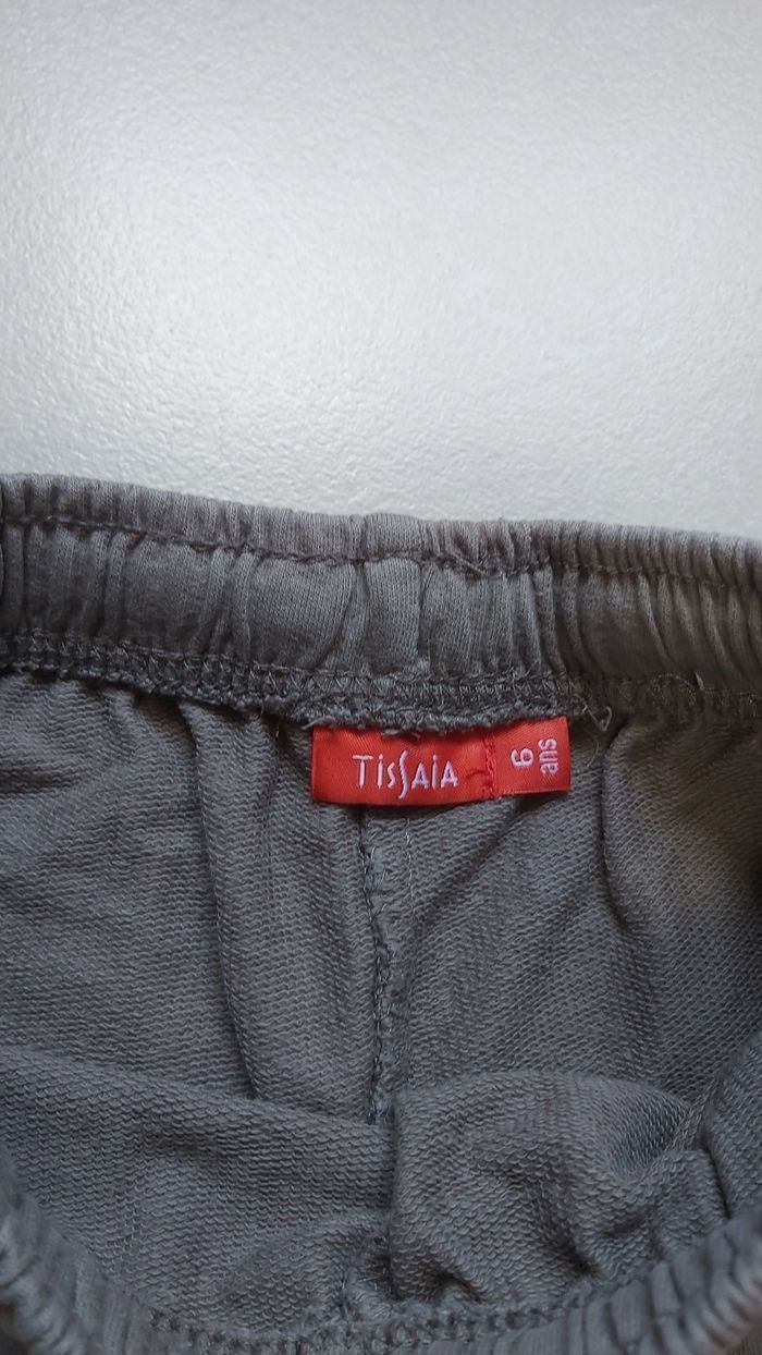 Short Taille 6 ans Taille élastique et réglage par cordon Couleur gris avec motif Marque Tissaia
