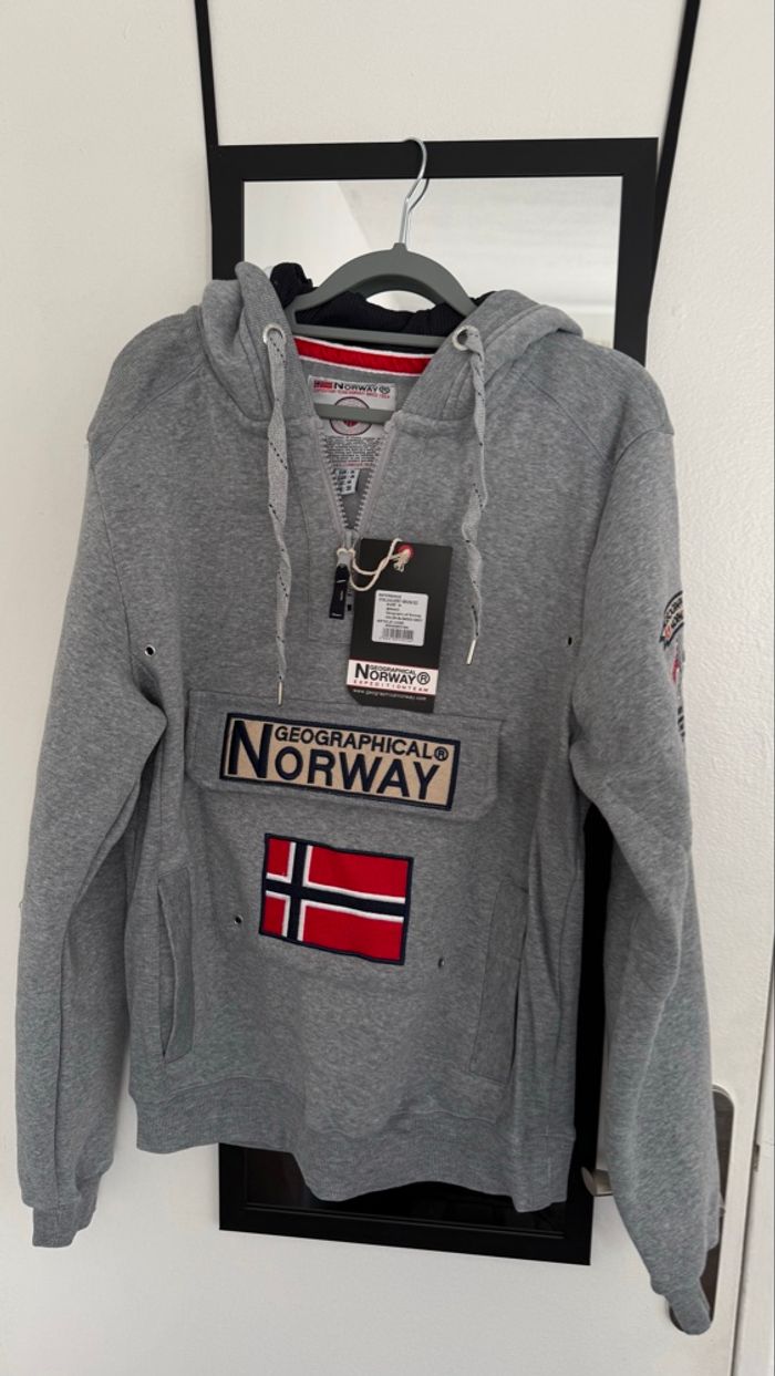 Sweat à capuche Geographical Norway, véritable emblème du style outdoor et technique. Conçu pour offrir une protection thermique optimale tout en affichant un look urbain affirmé, ce modèle "Expedition Team" est un incontournable pour les amateurs de vêtements robustes et stylés. ✨ État : • Neuf avec étiquette • Jamais porté, état strictement impeccable • Aucun défaut, logos et patchs parfaitement nets 🎨 Coloris : • Noir profond (base principale) • Détails contrastés blancs et rouges (drapeaux et inscriptions) • Patch central "Geographical Norway" brodé avec soin 👕 Détails : • Poche kangourou centrale à rabat avec broderie du drapeau norvégien • Capuche ajustable avec cordons de serrage techniques • Multiples écussons brodés sur les manches et la poitrine (style grand nord) • Poignets et bas de vêtement resserrés pour une meilleure isolation contre le froid • Intérieur doux et confortable pour un usage quotidien ou en extérieur