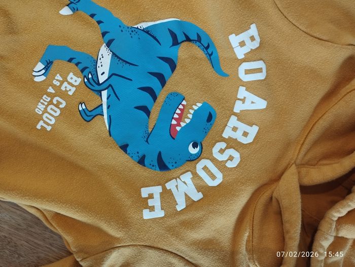 Jaune moutarde (la photo qui reflète le mieux la vraie couleur est celle du gros plan du dinosaure) Manches longues Motif dinosaure Excellent état C&a Taille 5 ans