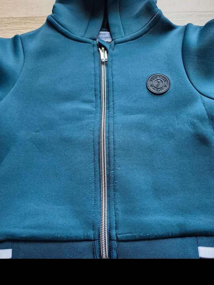 Vends ce joli gilet/manteau léger à capuche de la marque Jacadi Paris, taille 12 mois. ​Couleur : Magnifique bleu canard / pétrole avec détails contrastés blanc et marine au col. ​Style : Sport-chic, matière confortable et épaisse, idéale pour la mi-saison. ​Détails : Écusson Jacadi sur la poitrine, fermeture éclair robuste et fonctionnelle. ​⚠️ À noter : Jamais porté mais le vêtement présente quelques fils tirés par endroits (principalement sur les manches et le corps, voir les photos pour plus de détails). Cela reste discret mais je préfère le signaler pour une vente en toute transparence. ​Détails de l'article : ​Marque : Jacadi Paris ​Taille : 12 mois ​État : Bon état (présence de fils tirés) ​Couleur : Bleu canard ​ ​#jacadi #jacadiparis #bebegarcon #12mois #vêtementsbébé #giletbebe #vestebebe #misaison #bleucanard #modeenfant #chic