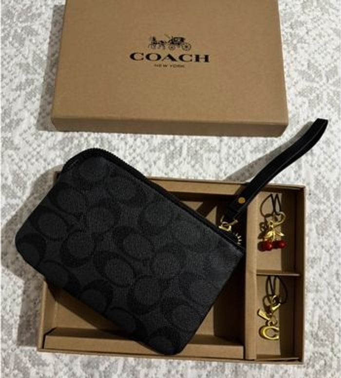 Porte monnaie coach vendu dans sa boîte avec deux porte-clés
