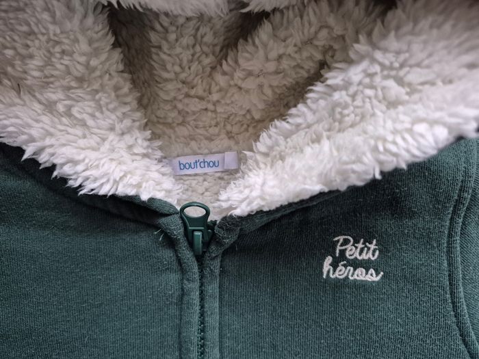 Veste à capuche doublée - Bout'chou - Vert - Taille 12 mois. - photo numéro 3