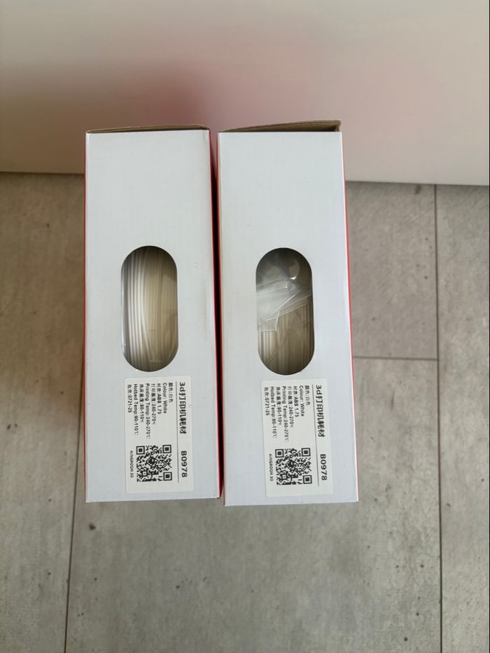 Je vends ce lot de 2 bobines de filament ABS blanc de la marque Kingroon, chaque bobine pèse 1 kg. - Type de produit : Lot de bobines de filament 3D - Marque : Kingroon - Matériau : ABS - Couleur : Blanc - Quantité : 2 bobines - Poids total : 2 kg - Diamètre : 1,75 mm État neuf sous blister N'hésitez pas à me contacter pour toute question ! Envoie rapide et soigné