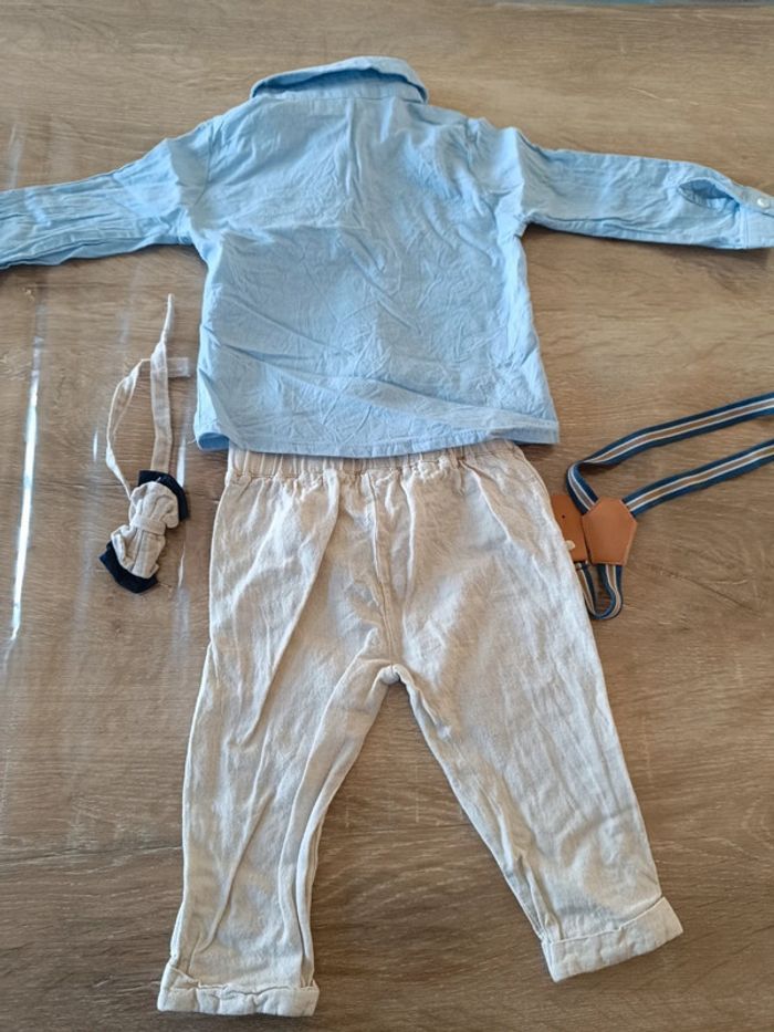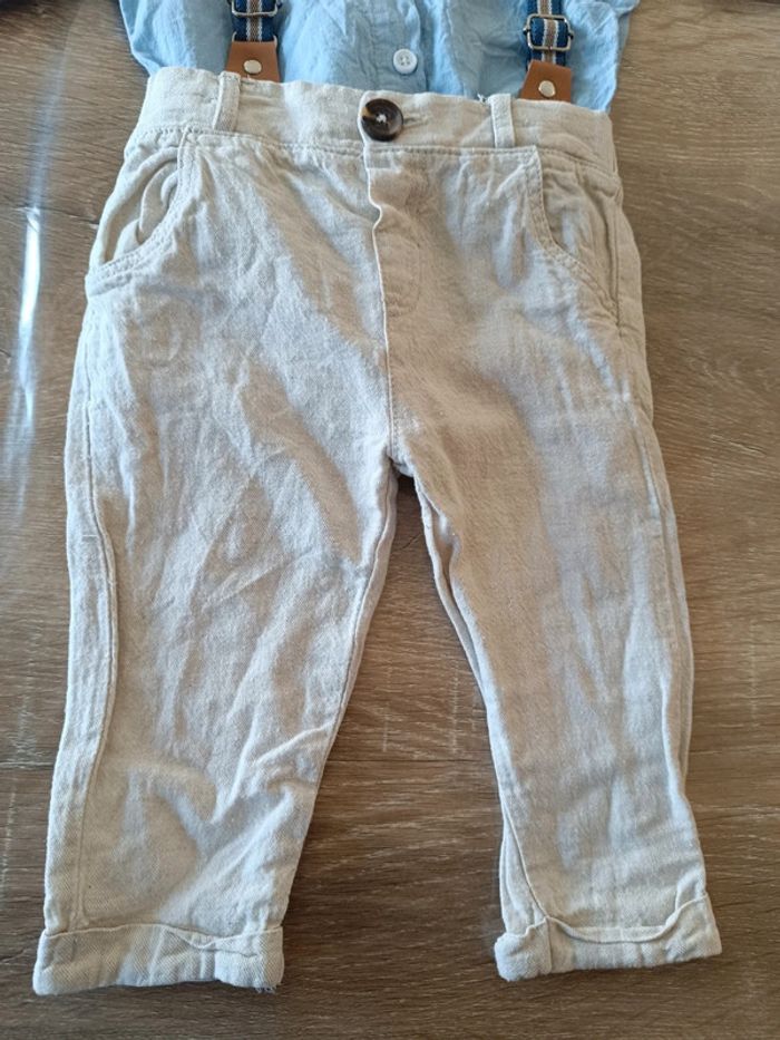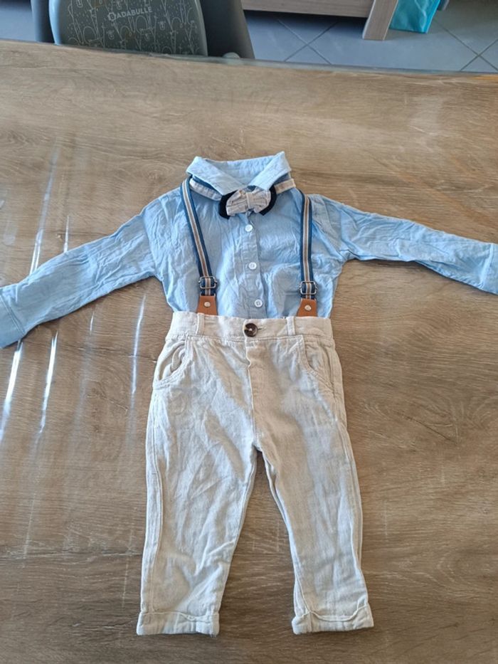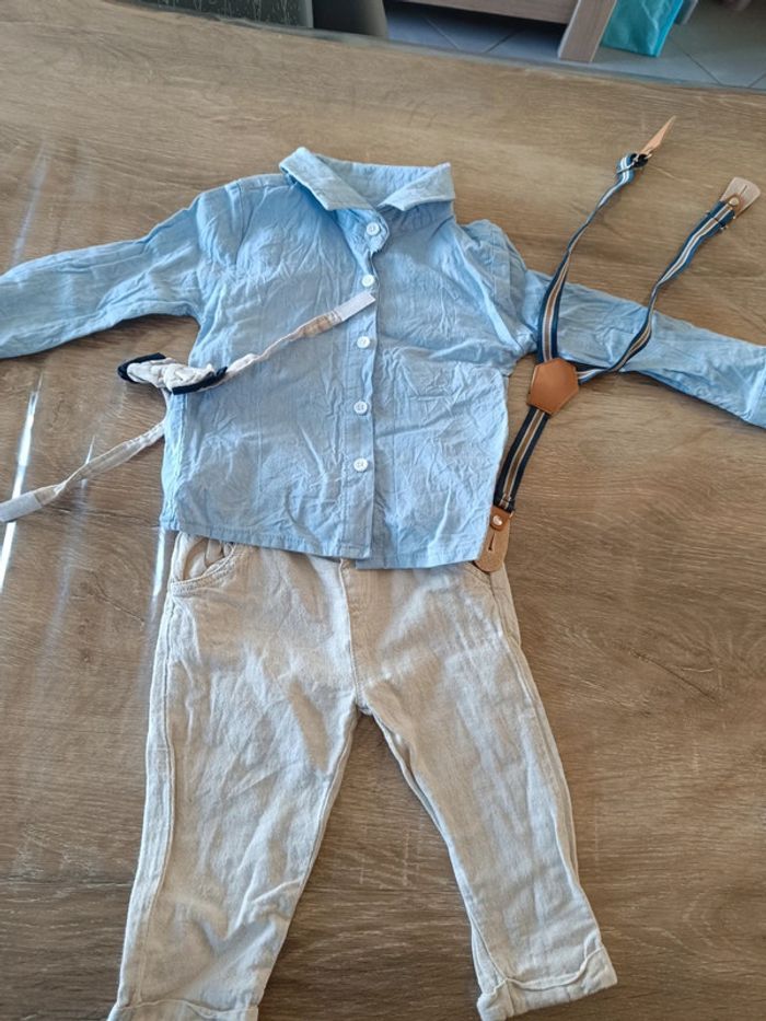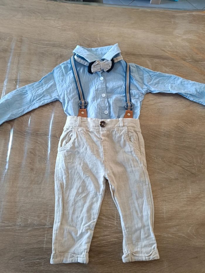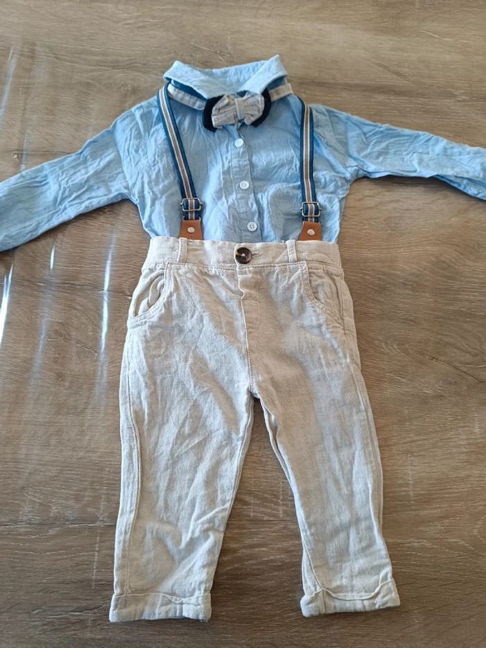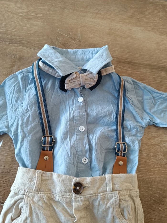 Ensemble fin pour les beaux jours Pantalon chemise noeud papillon et bretelle En très bon état #laeti1059_6mois