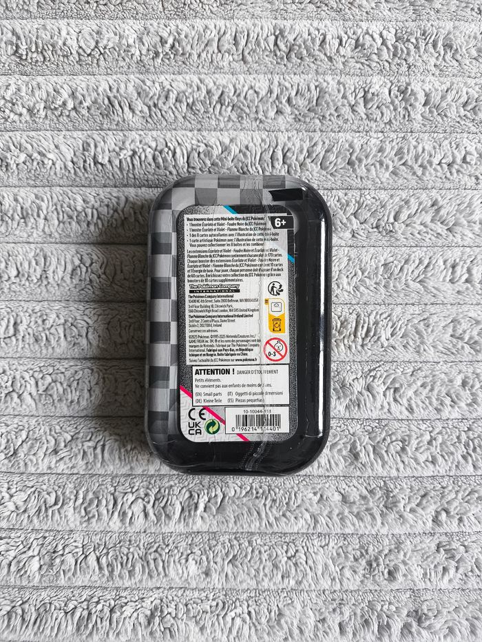 Découvrez la Mini Tin EV10.5 Mamanbo & Coupenotte, collector compact de l'extension Pokémon Écarlate & Violet – Foudre Noire & Flamme Blanche, hommage à la région d'Unys ! Édition française officielle, sortie juillet 2025. Contenu précis : 1 booster Foudre Noire . 1 booster Flamme Blanche .