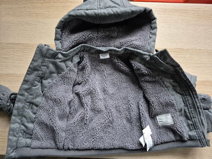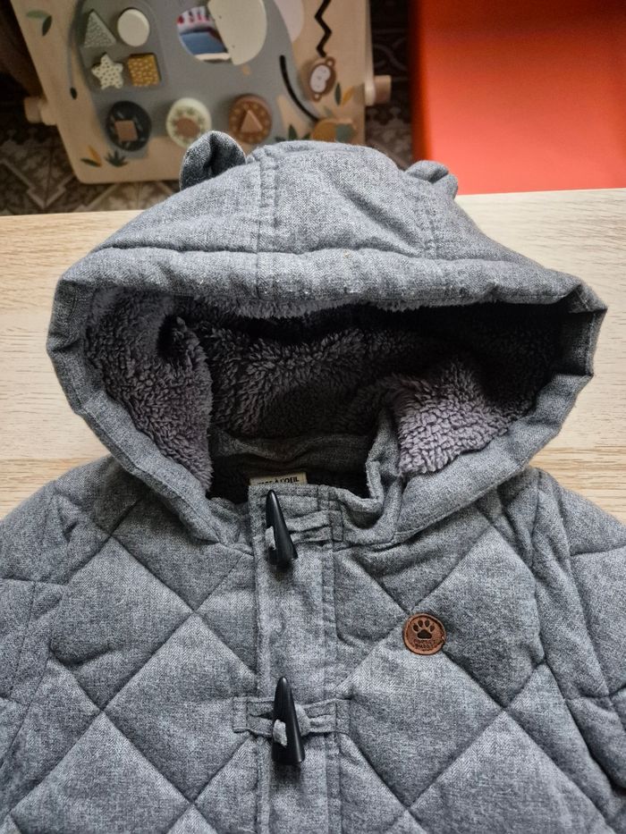 Vends un magnifique manteau d'hiver pour bébé garçon de la marque Tape à l'Œil (TAO). Chaud et pratique, il est parfait pour protéger bébé des grands froids. ​Taille : 6 mois (stature 68 cm). ​Couleur : Gris moyen chiné. ​Style : Look "Duffle-coat" avec surpiqûres en losanges (effet matelassé). ​Matière : Extérieur aspect drap de laine gris. ​Intérieur entièrement doublé en polaire sherpa grise. ​Les "plus" pratiques : * Moufles assorties amovibles (attachées par boutons pour ne pas les perdre). ​Capuche fixe avec de petites oreilles décoratives. ​Double fermeture : fermeture éclair robuste + boutons brandebourgs stylés. ​Écusson "Forest Buddy" sur la poitrine. ​État : Très bon état. ​ ​#TAO #tapealoeil #bebegarçon #6mois #manteauhiver #dufflecoat #vetementbebe #manteau6mois #hiverbebe #moufles