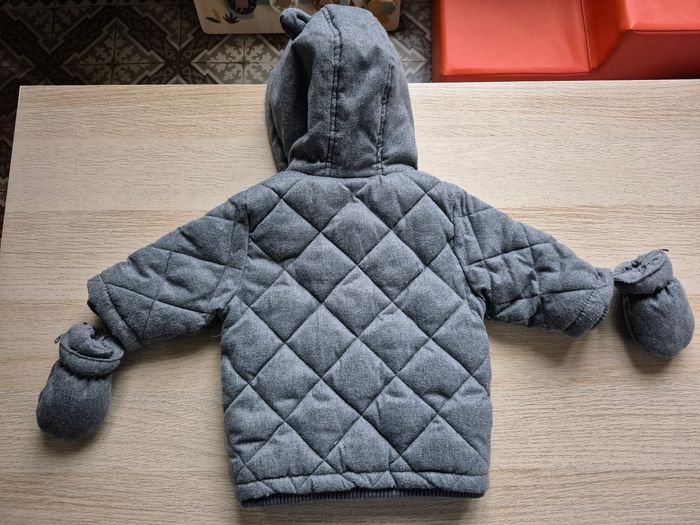 Manteau d'hiver gris chiné Tape à l'Œil (TAO) avec moufles – 6 mois - photo numéro 4