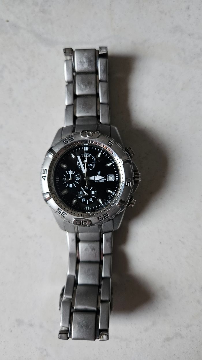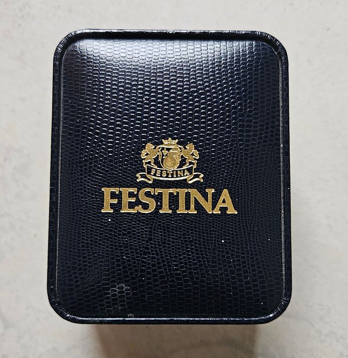 Montre Festina avec sa boite 16169 Chronograph. En acier inoxydable brossé et chromé. Fond noir. Pile fournie. Fonctionne très bien.