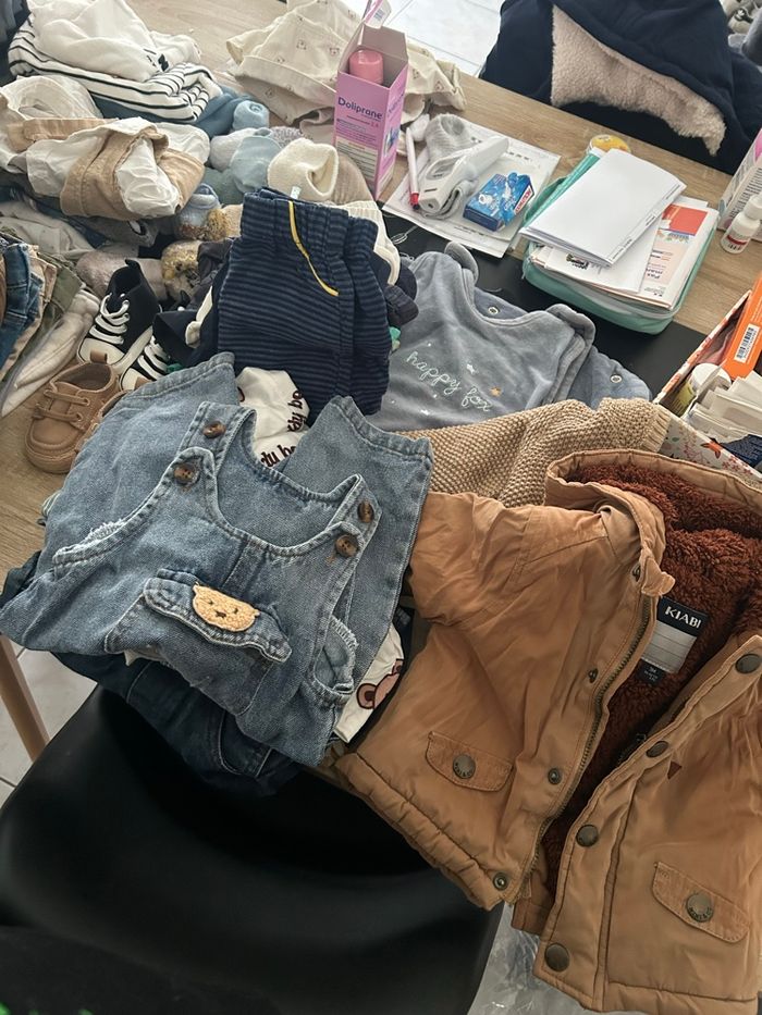Bonjour je vends un gros lot de vêtements bébé taille 3 mois contenant : 9 pyjamas coton 16 pyjamas velours 10 bodys manches courtes 10 bodys manches longues 10 t-shirt 10 t shirt manches longues 5 chemises 4 pulls 10 pantalons 2 manteaux 3 salopettes 6 shorts