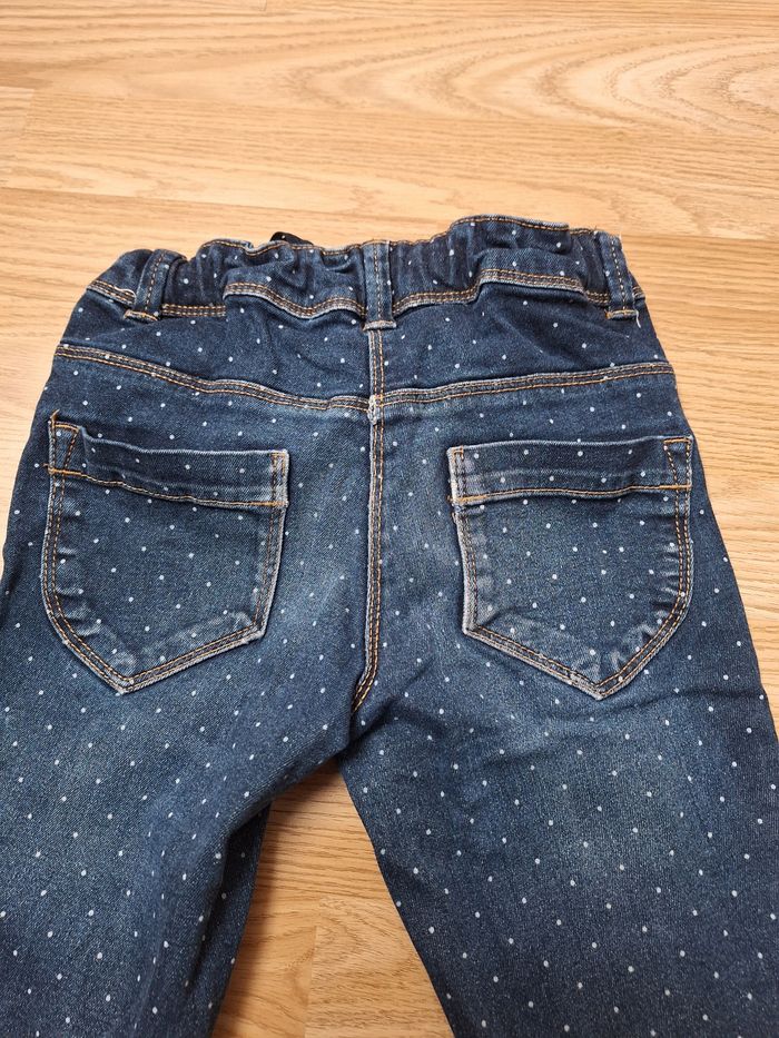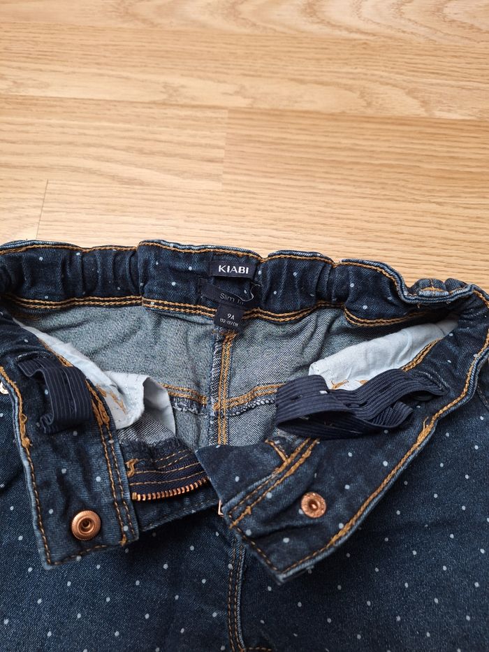 Jean slim fit KIABI 9 ans bleu à pois blancs réglable à la taille par élastiques 2 poches devant et 2 poches derrière
