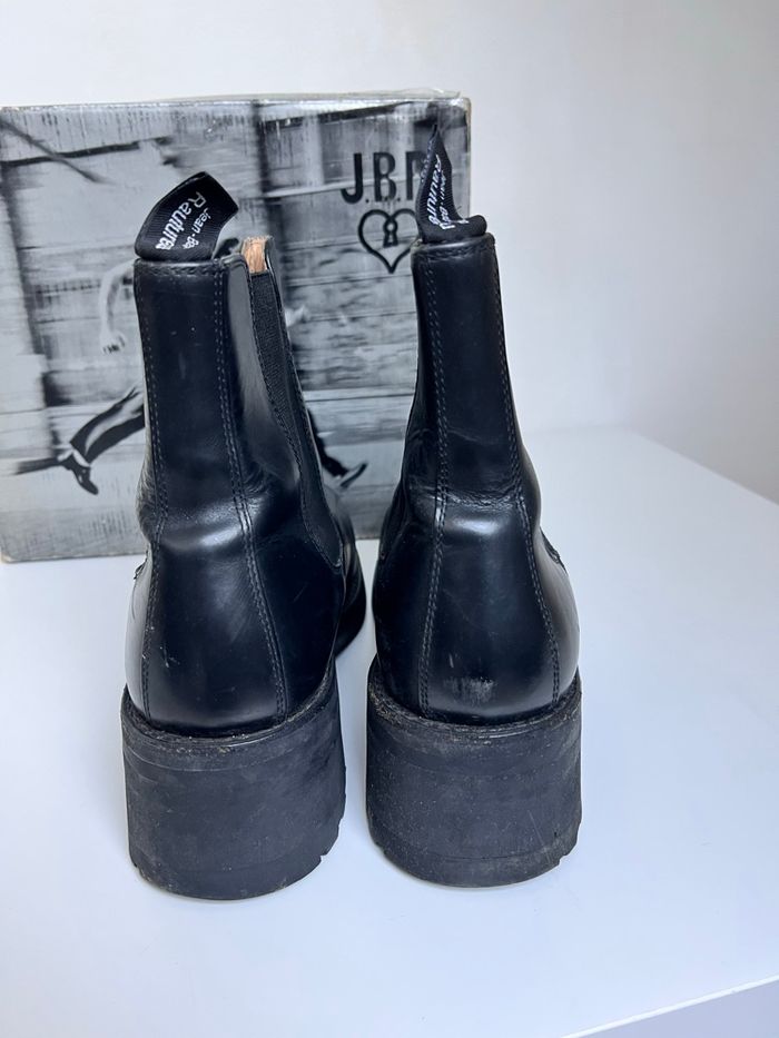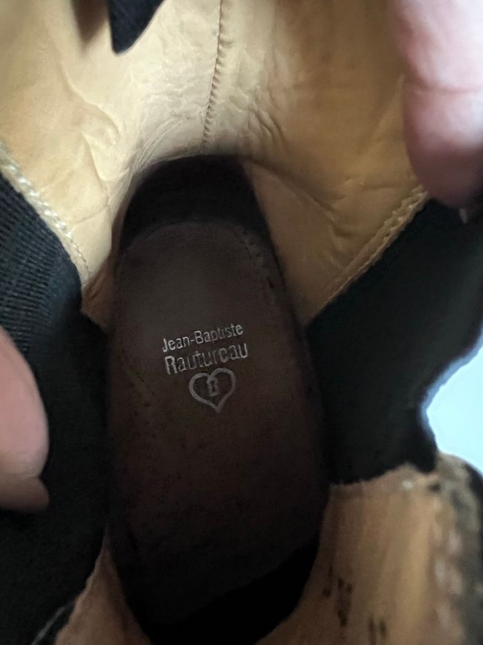 Je vends une paire de boots homme de la marque Jean-Baptiste Rautureau (Rautureau), en cuir noir, pointure 44. Chaussures en excellent état, très peu portées, soigneusement entretenues. • Cuir noir de très belle qualité • Fabrication haut de gamme • Valeur en magasin : 480 € • Prix de vente : 85 € (bradées) • Vendues avec boîte d’origine Les boots sont franchement en très bon état, propres, sans défaut notable.