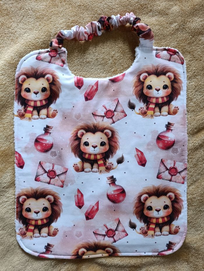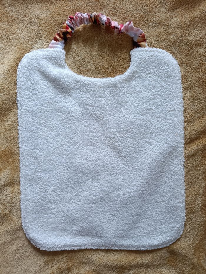 Bavoir à élastique en coton et éponge certifié oeko tex de 36 cm par 28 cm.