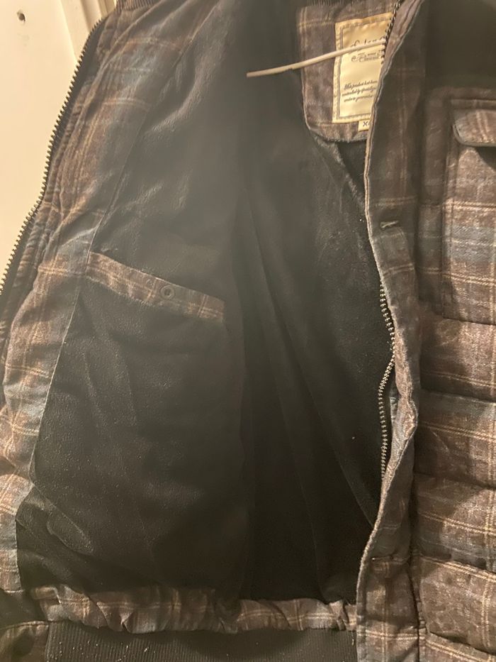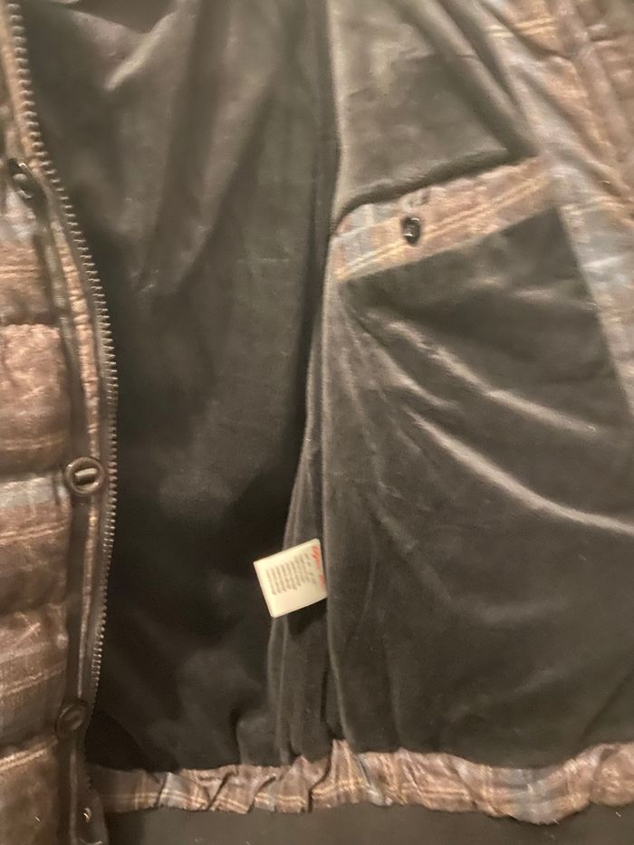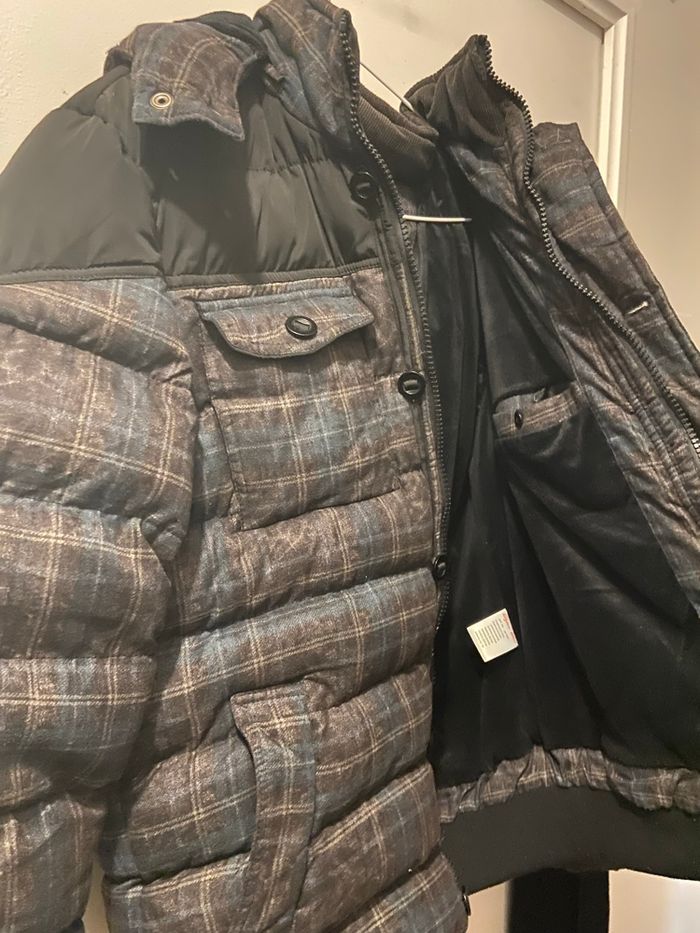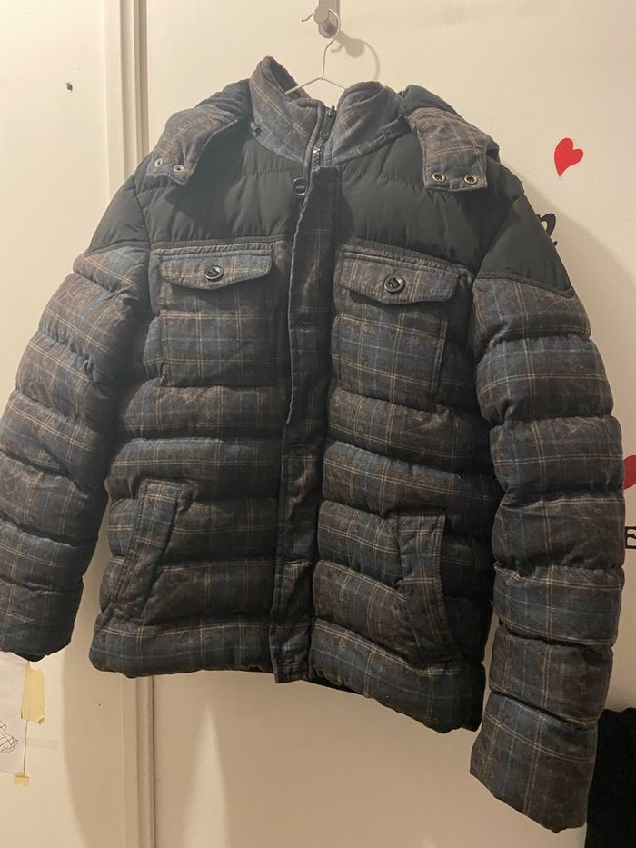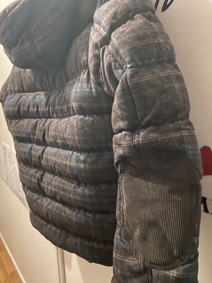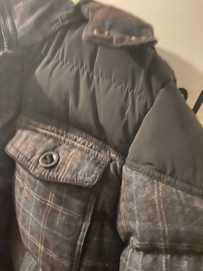 À vendre, une magnifique veste matelassée (doudoune) de la marque Dylan Star, en excellent état. Parfaite pour affronter l'hiver avec style et confort. • Taille : XL. • Motif : Carreaux élégants (Bleu, Marron, Noir). • Détails : • Très chaude avec doublure intérieure douce. • Capuche amovible. • Fermeture éclair + boutons de protection. • Plusieurs poches pratiques (poitrine et intérieure). • Finitions élastiques aux poignets et à la taille pour couper le vent. État : Très bon état / Propre.