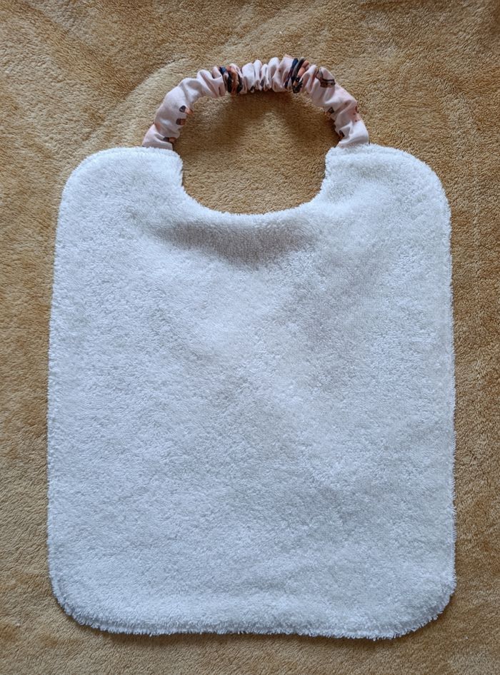 Grand bavoir à élastique en coton et éponge certifié oeko tex. Dimensions de 36 cm par 28 cm.