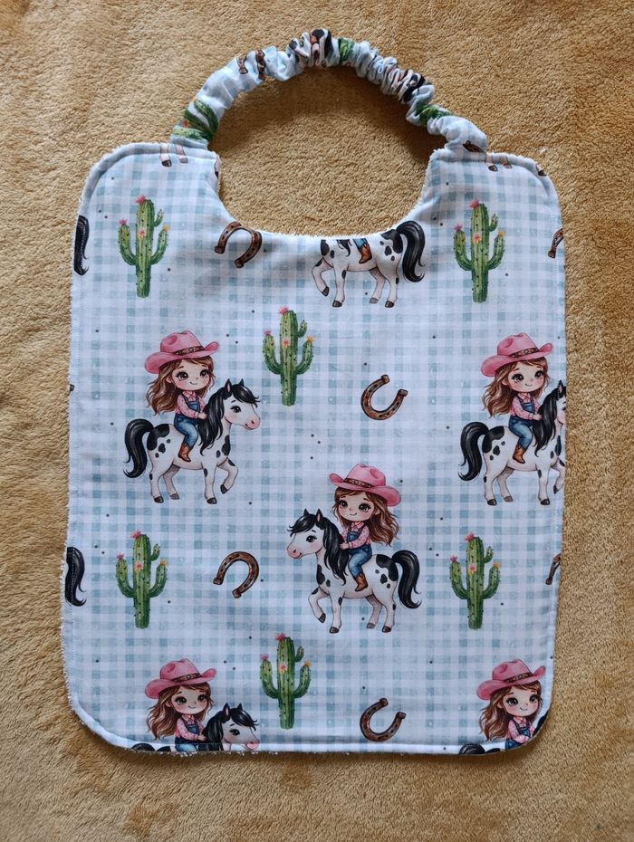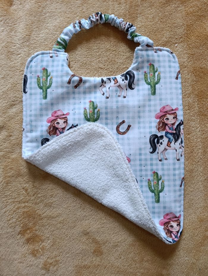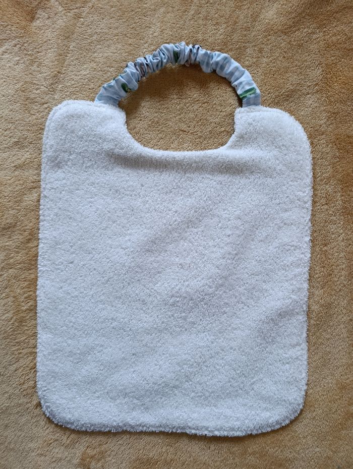 Bavoir à élastique de 36 cm par 28 cm en coton et éponge certifié oeko tex.