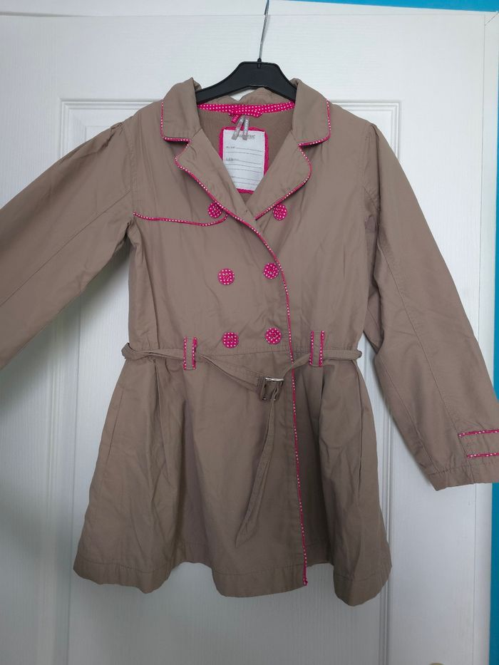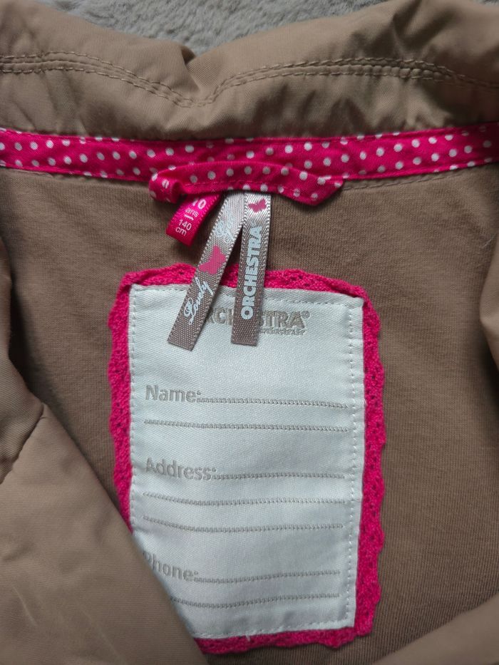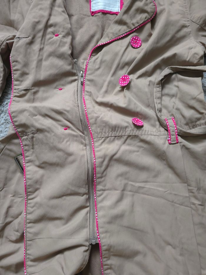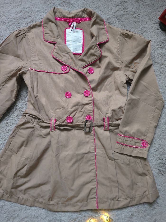 🧥 Trench / manteau mi-saison fille – Orchestra 📏 Taille : 10 ans Joli trench Orchestra couleur beige/taupe avec de superbes détails roses à pois (boutons, finitions, ceinture) 💗 Un modèle élégant et pratique, idéal pour la mi-saison (printemps / automne). ✨ Détails : Fermeture par zip + boutons Ceinture à la taille Manches longues avec finitions soignées Doublure confortable Coupe féminine et intemporelle 👕 État : Très bon état général (voir photos), propre et prêt à être porté 🏠 Maison non-fumeur 📦 Envoi rapide et soigné 💬 N’hésite pas si tu as des questions