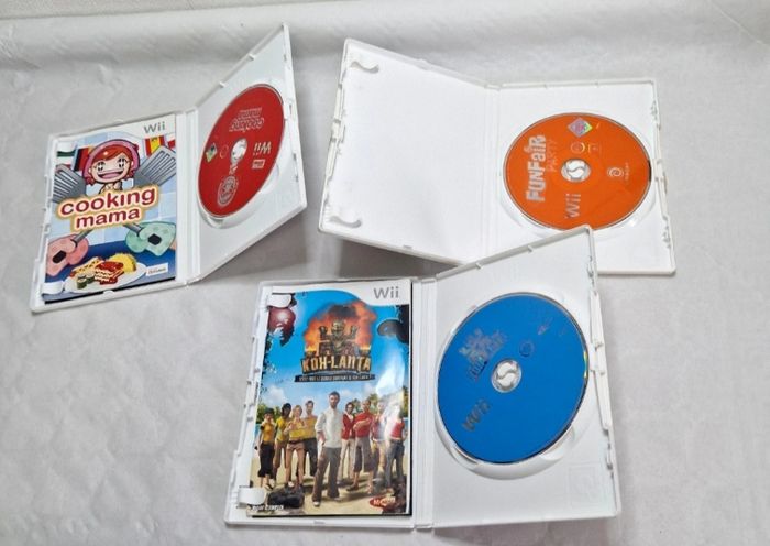 Bonjour, ​Je vends ce lot de 3 jeux pour la console Nintendo Wii. Une sélection parfaite pour s'amuser en famille ou entre amis, comprenant du challenge culinaire avec Cooking Mama, de l'aventure avec Koh-Lanta et de l'amusement festif avec Circus Party. ​Contenu : Le lot comprend les jeux Cooking Mama, Circus Party et Koh-Lanta. ​ ​Détails physiques : Les boîtiers et jaquettes sont présents pour les trois titres. Les CD comportent quelques rayures d'usage mais sont tous fonctionnels. À noter que la notice est présente pour Cooking Mama et Koh-Lanta, mais absente pour Circus Party. ​ #Wii #Nintendo #NintendoWii #Gaming #JeuxVideo #Lot #Famille