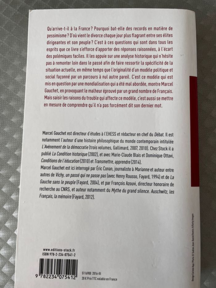 À vendre : Comprendre le malheur français - Marcel Gauchet 📖 • Auteurs : Marcel Gauchet, avec Éric Conan et François Azouvi • Édition : 📚 • État : Très bon état ✅ • Résumé : Une réflexion profonde sur les crises politiques et sociales de la France, analysées par l’un des plus grands philosophes contemporains. 💰 Prix : 3 € 📦 Livraison : Envoi rapide et soigné Un ouvrage passionnant pour mieux comprendre l’histoire et les défis actuels ! ✨ Contactez-moi pour plus d’infos. 😊
