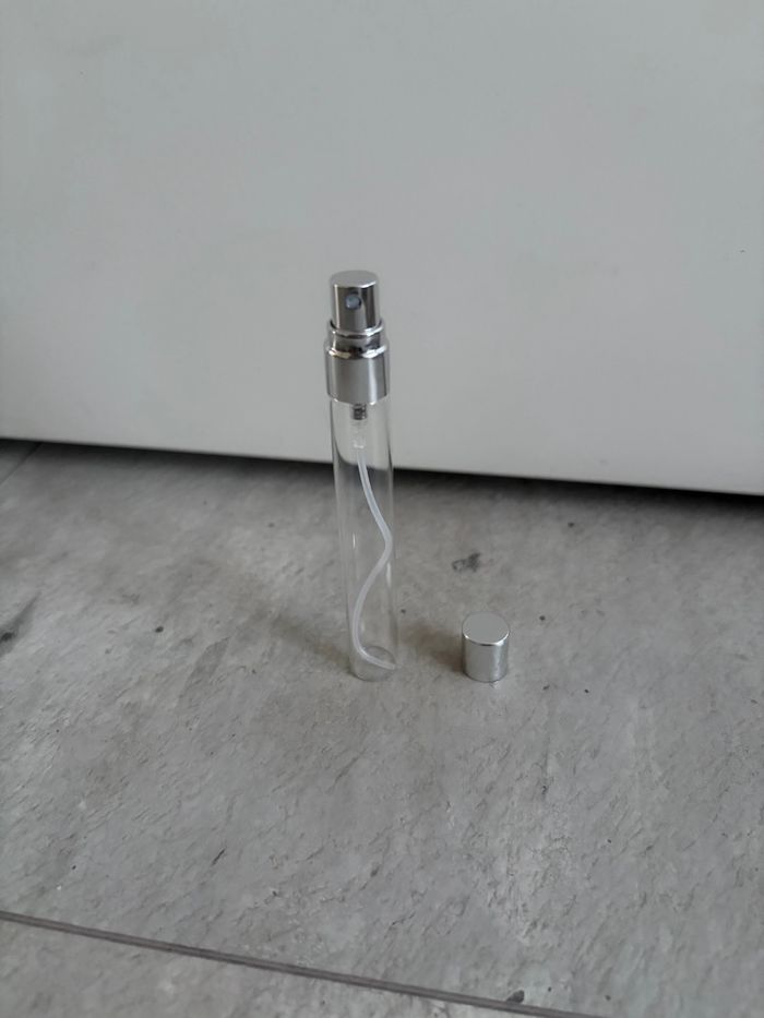 Je vends ce mini vaporisateur en verre transparent d'une contenance de 10 mL. - Type de produit : Mini vaporisateur - Matière : Verre transparent - Contenance : 10 mL - Accessoires inclus : Embout pulvérisateur Très bon état N'hésitez pas à me contacter pour plus d'informations. Envoie rapide et soigné