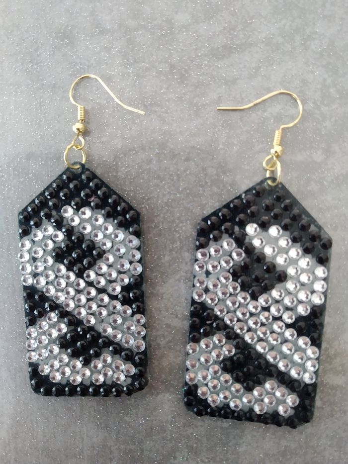 Grandes boucles d'oreille en broderie diamant recto verso. noir/blanche: 8 cm de longueur et 3.8 cm de large A offrir ou à vous offrir, parfaites pour accompagner votre tenue. Les boucles d'oreilles sont légères. Elles apporteront une touche de brillance à votre look!! L'envoie se fait dans une enveloppe à bulles, en lettre suivie. Ni reprises, ni échangées.