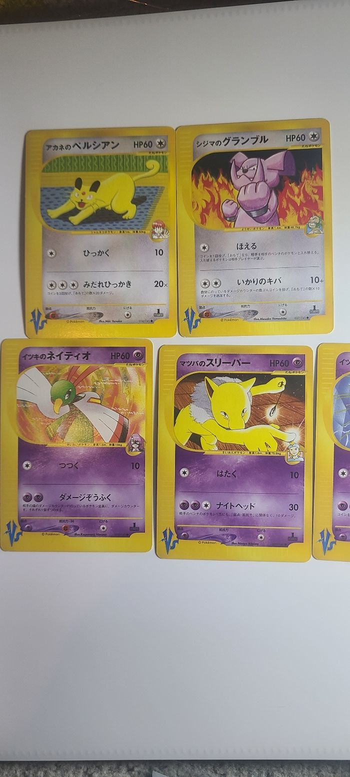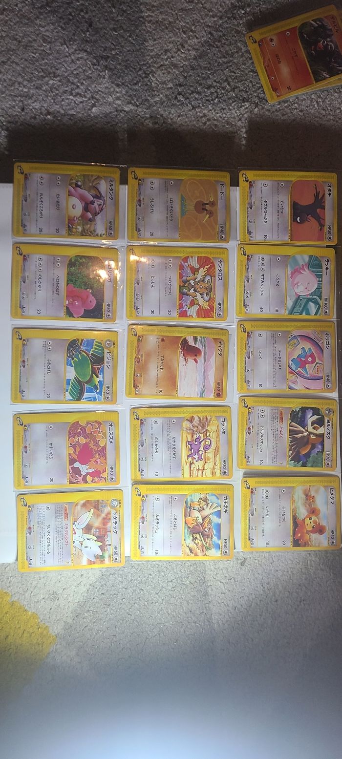 Ne pas acheter Bonjour voici un lot de carte pokémon de carte wizard jap e series de toute les series Possibilité d'acheter à l'unité ou en lot Pour les états il y a de excellent à NM Envoie protégé et rapide N'hésitez pas à me dire ce que vous recherchez j'ai pas mal d'autre cartes pas encore mise sur mon dressing Une question n'hésitez pas je répond rapidement et avec plaisir ! Tags : EV4.5 destinée à Paldea mew Zacian origine perdue Zenith Suprême pikachu dialga palkia lugia sulfura electhor artikodin entei ho-oh raikou evoli mewtwo pikachu mentali noctali alternate scellé tripack xy evolutions fossil pichu EX Niv X GX G V Vmax escouade #cartepokemon #pokemonjap #japanese #japanesecards #japanesepokemon #mew #mewex #pokemon