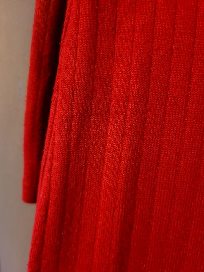 Robe longue avec léger col, de couleur rouge, taille S, en très bon état. Article lavé pour la vente.