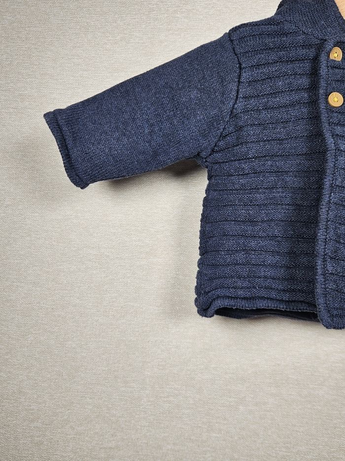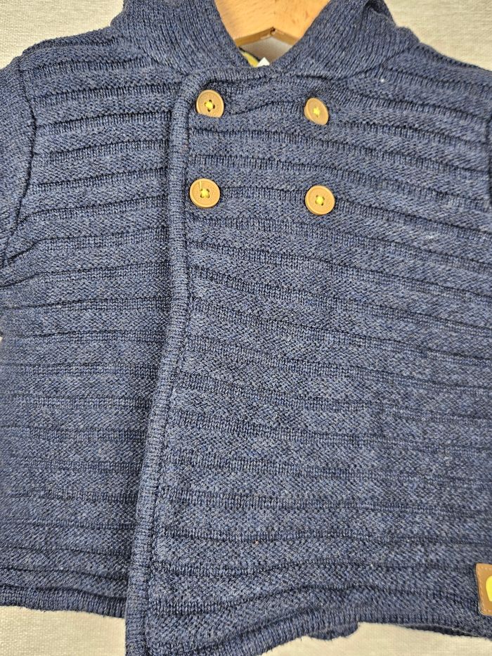 Hello ! 👋 Je te propose cette pièce de la marque Obaïbi, une super trouvaille pour le dressing de bébé 👶 Ce gilet à capuche en maille bleu marine est un indispensable pour l'hiver, avec son joli boutonnage croisé style caban et sa texture côtelée. Informations utiles: * 👕 Article : Gilet à capuche en maille bien épaisse * 📏 Taille : 3 mois / 59 cm * 🌈 Couleur : Bleu marine * 🧵 Matière : * ✨ État : ⭐⭐⭐⭐ Les petits + : 🏡 Logement non fumeur et sans animaux. 📦 Envoi rapide et soigné. N'hésite pas si tu as la moindre question ou si tu veux d'autres photos ! Je suis là. 😉 #obaibi #3mois #bebegarcon #giletcapuche #bleumarine #maille #hiver #chaud #tricot #modebebe