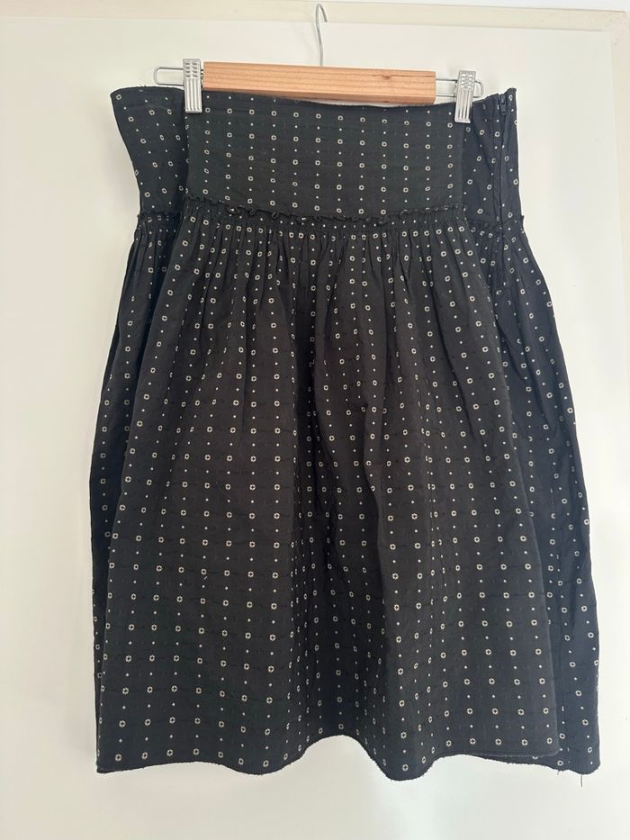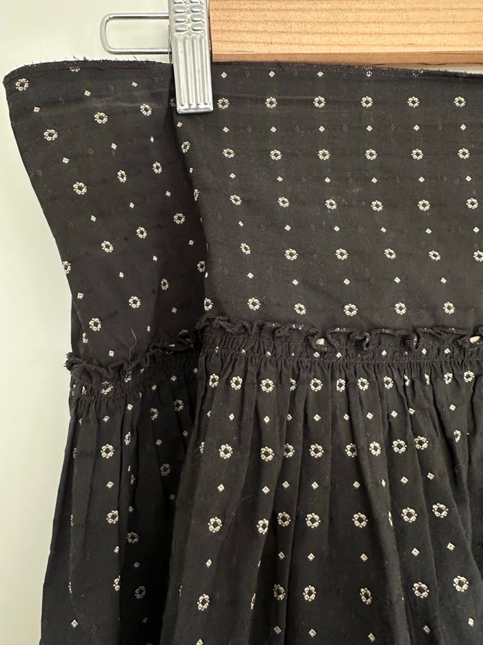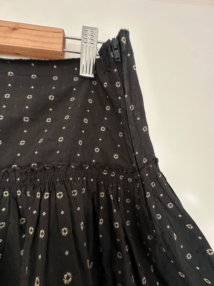 Très jolie jupe volumineuse de la marque One Step, parfaite pour un look créateur ou bohème chic. Elle se distingue par sa coupe "bouffante" qui apporte un beau mouvement et une silhouette unique. • Couleur noire avec de délicats petits motifs blancs brodés. • Large bande à la taille pour un bon maintien et un effet cintré. • Fermeture éclair discrète sur le côté. • Dimensions : Longueur totale de 57 cm (arrive au-dessus du genou selon votre taille). • Taille : 44. • État : Bon état Une pièce facile à porter avec un petit pull ajusté ou un caraco pour une soirée ! #onestep #jupeonestep #jupebouffante #taille44 #jupevolume #lookcreateur #chic #modefemme44