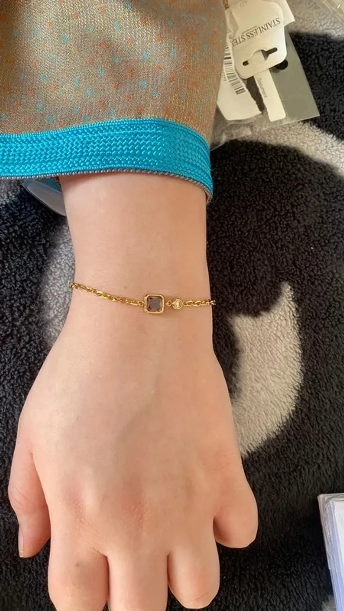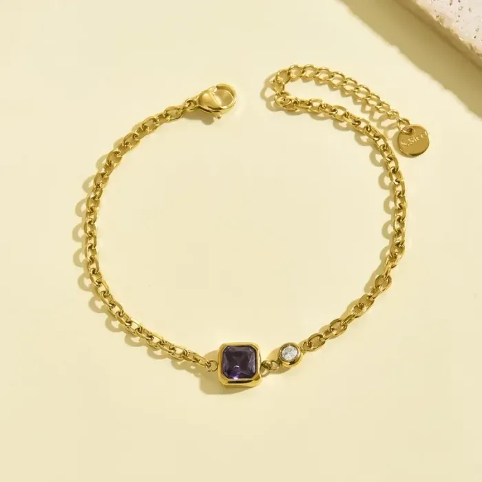Le bracelet présente un pendentif orné de zircons scintillants, ajoutant une dimension luxueuse et brillante à l’ensemble. Avec son plaquage en or 14K réalisé par un processus de placage ionique (IP), il garantit non seulement une esthétique raffinée, mais aussi une durabilité exceptionnelle, résistant aux ternissures et à l’usure.