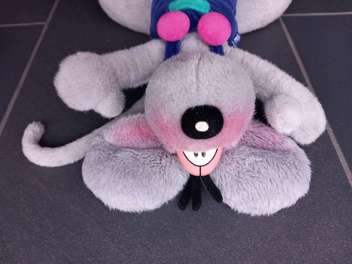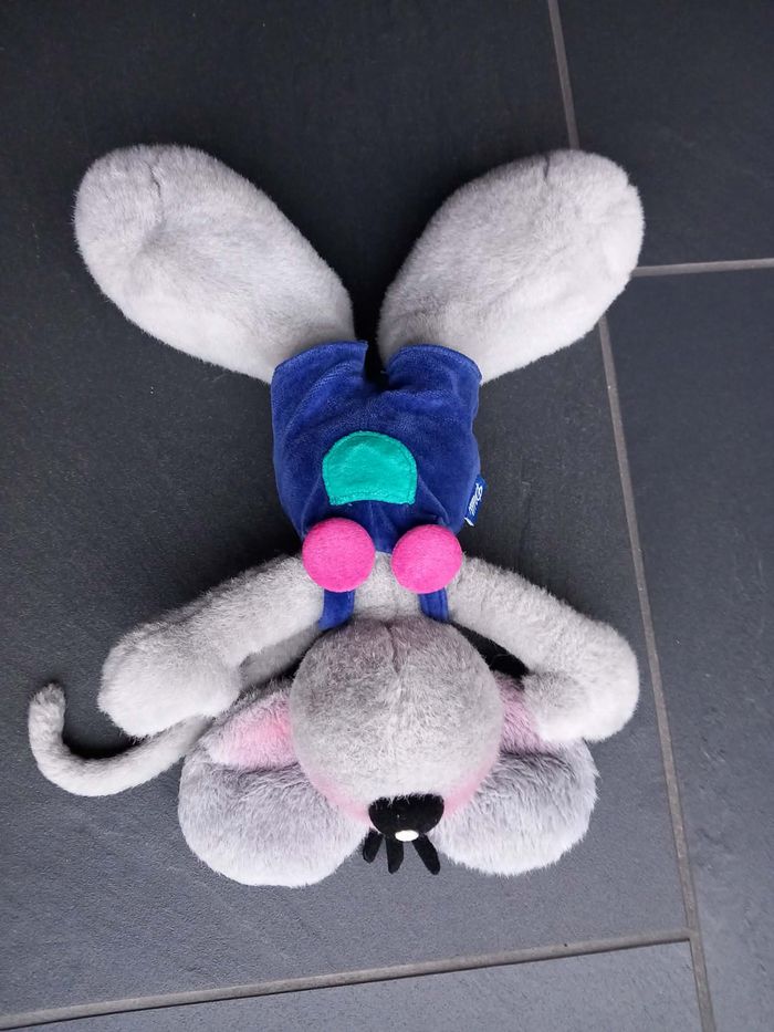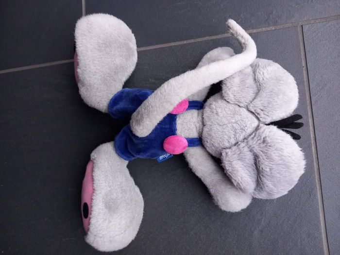 Peluche Diddl gris avec salopette bleue en parfait état environ 34 cm - photo numéro 4