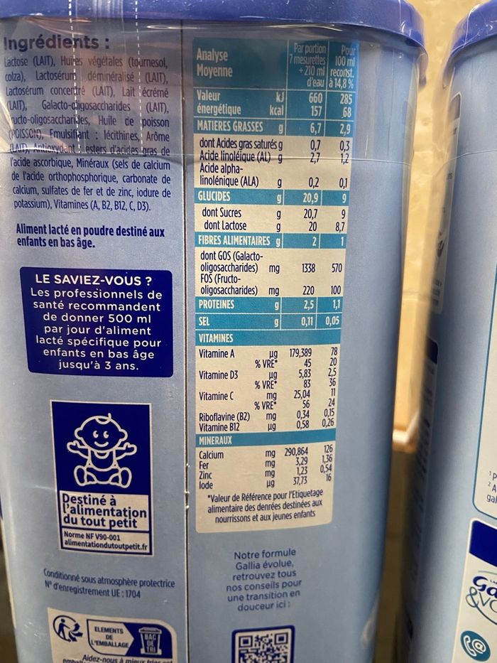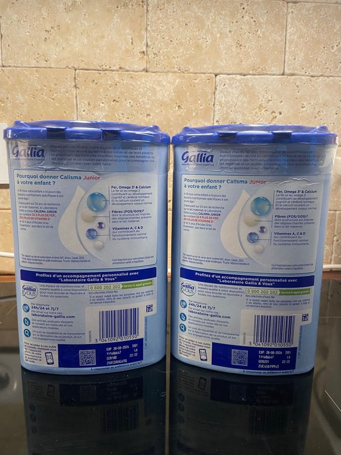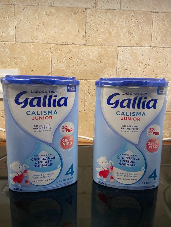 Je vends deux boîtes de lait de croissance 4 Calisma Junior des laboratoires GALLIA car mon fils n’en veut plus… (dès 18 mois) Date de péremption : 28/08/2026
