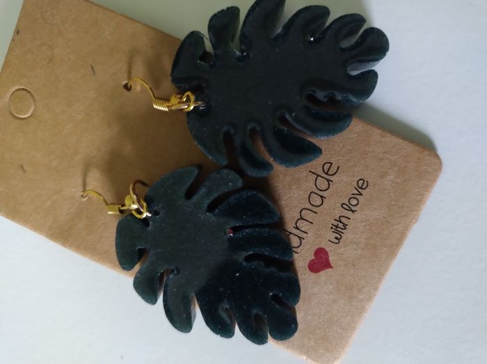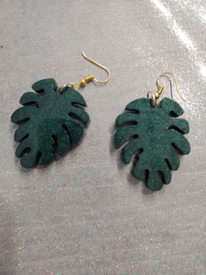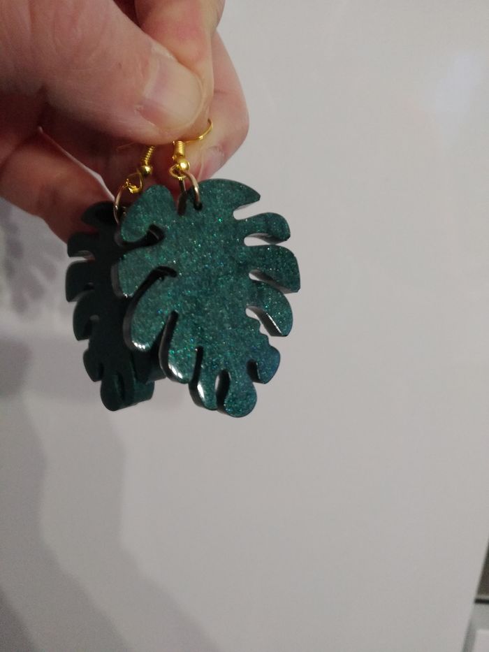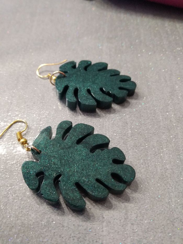 Ces jolies boucles d'oreilles vertes iront parfaitement avec votre tenue. Elles sont réalisées en résine époxy. C'est un cadeau idéal pour offrir ou à vous offrir. Ces boucles d'oreille sont réalisées avec patience et passion. Elles viendront apporter du peps à votre tenue. Elles sont uniques. Il peut y avoir quelques imperfections mais ne se voient pas une fois portée. Longueur: 4.5 cm largeur: 2.5 cm Ces jolies boucles sont envoyées dans une enveloppe à bulles. Ni reprises, ni échangées