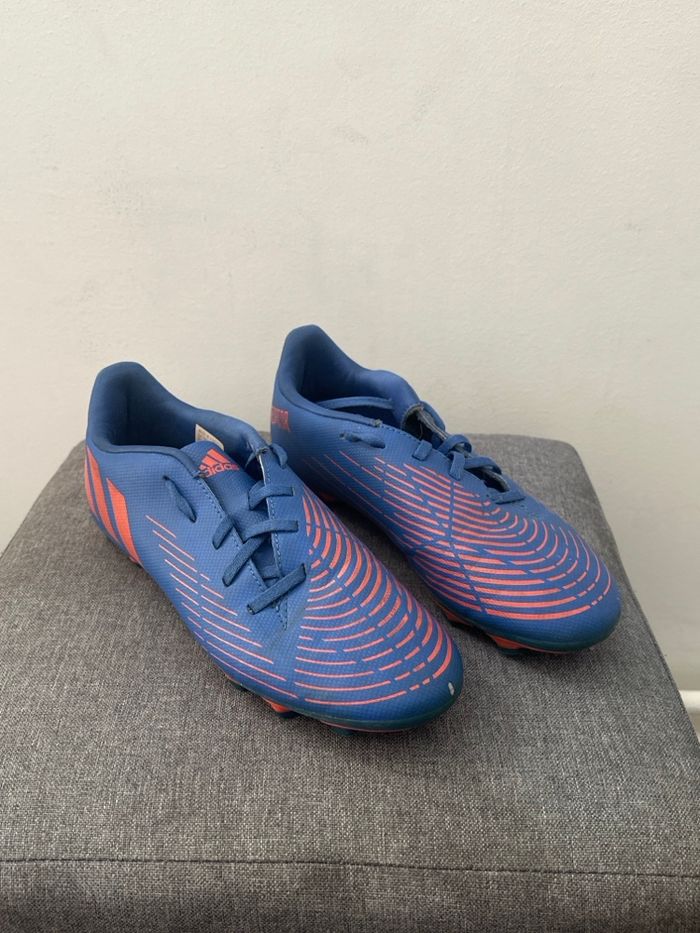 Chaussures de football Adidas bleues avec détails roses, idéales pour entraînements et matchs. Bon maintien du pied, légères et confortables. ✔️ Taille : 38 ✔️ État : Bon état (traces d’usage normales, voir photos) ✔️ Marque : Adidas ✔️ Type : crampons (terrain synthétique / naturel selon modèle) Chaussures propres et prêtes à jouer ⚽ Envoi rapide 📦 Remise possible pour achat en lot.