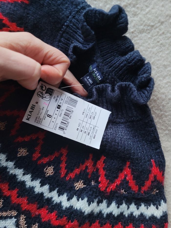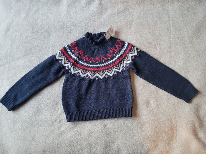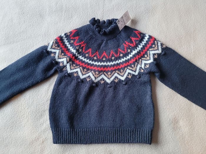 Pull kiabi 8 ans Neuf Bleu marine, col jacquard
