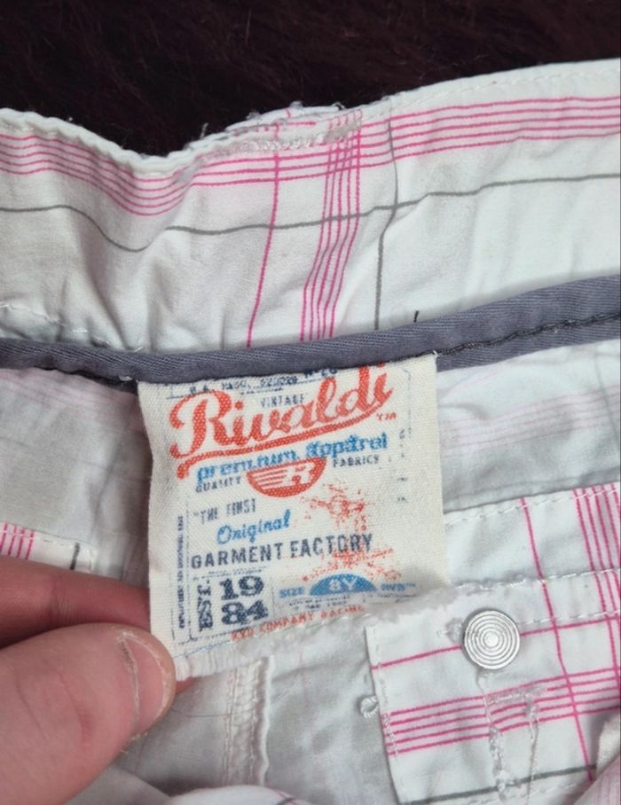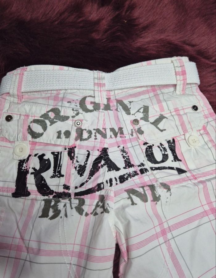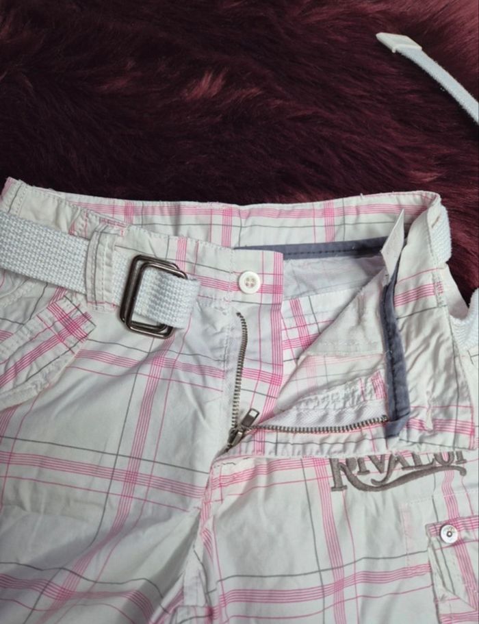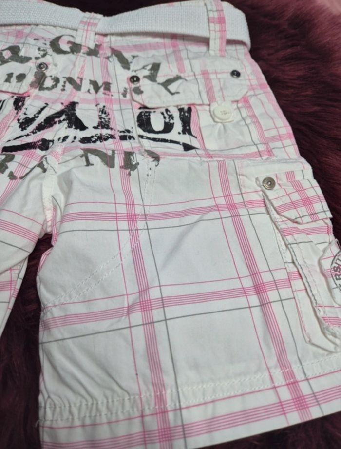 Short court pour garçon Marque Rivaldi Cédé avec ceinture type sangle assortie Fermeture zippée + bouton Nombreuses poches En 100 % coton agréable à porter Motif carreaux col. rose sur fond uni blanc Taille 8 ans Etat proche du neuf car porté uniquement lors d'occasions particulières...