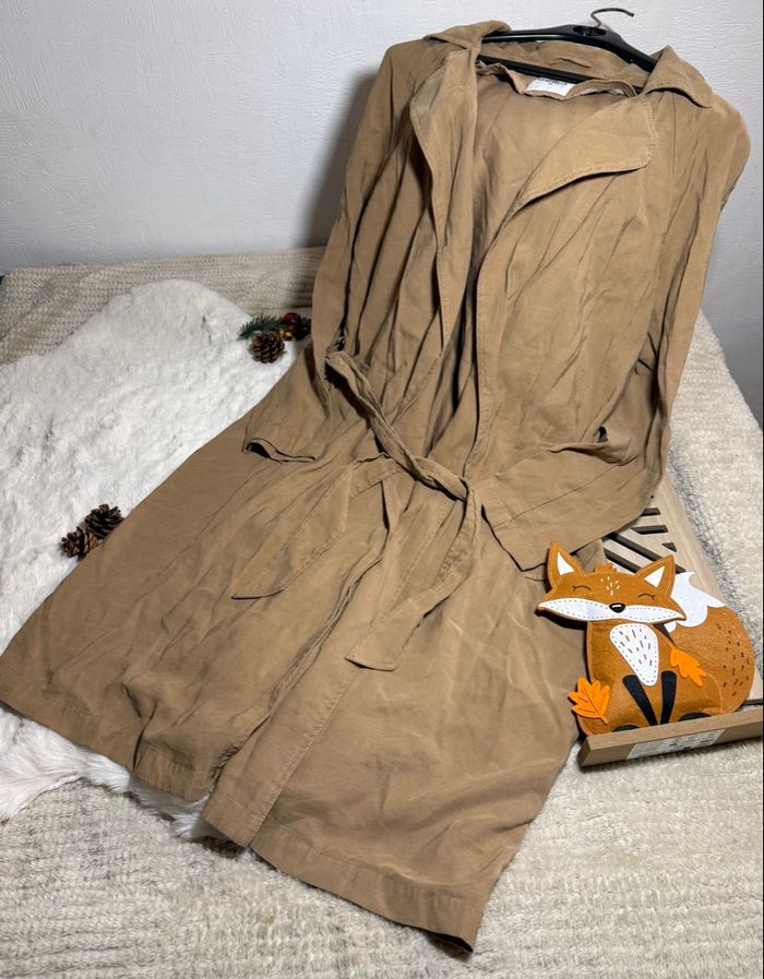 Trench femme mi long , couleur camel. Se ferme par une ceinture , 2 poches. Taille 42 - gemo