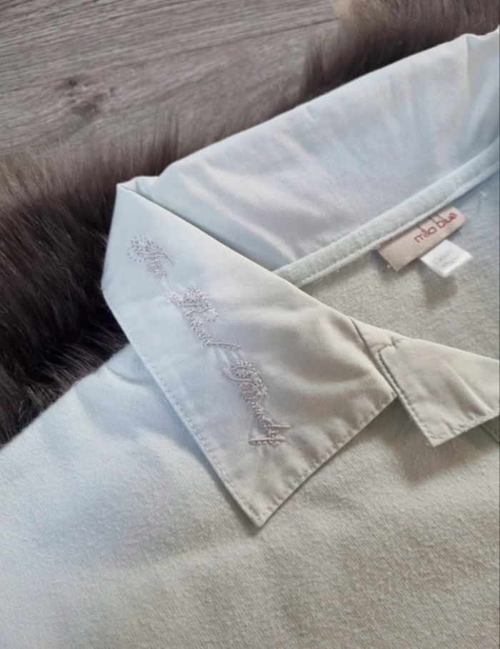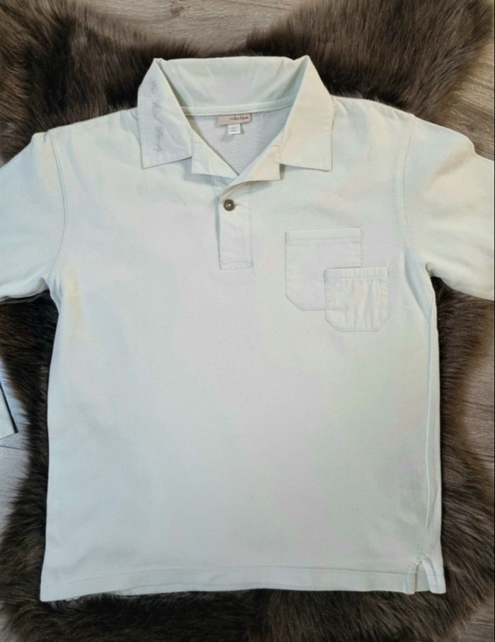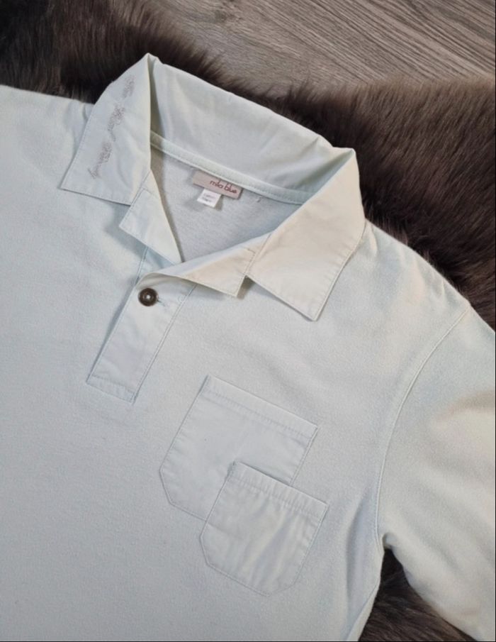 Tee-shirt a manches longues pour garçon Façon polo, broderie sur col type chemise 2 poches poitrine 100 % coton, coloris vert d'eau Esprit chic, idéal a porter pour toutes occasions Marque Mila Blue Taille 10 ans = 138 cm