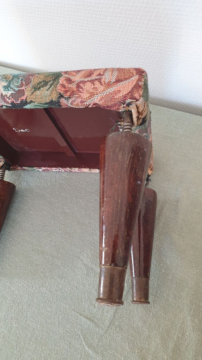 Vintage meuble ancien petit tabouret de pieds bois et tissu - photo numéro 5