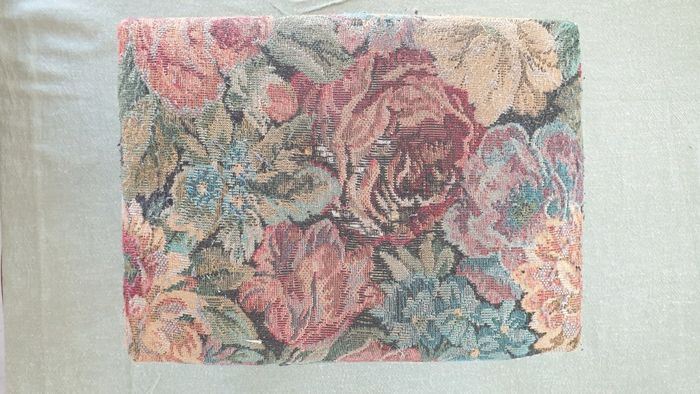 Vintage meuble ancien petit tabouret de pieds bois et tissu - photo numéro 1