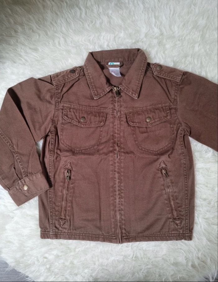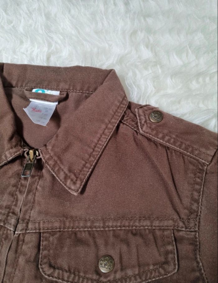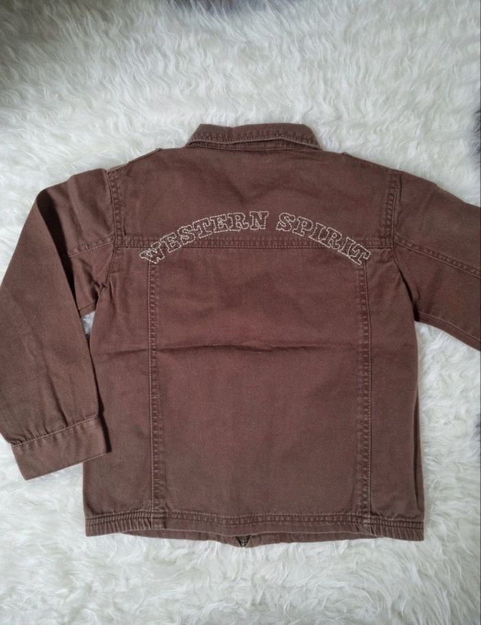 Veste en coton léger pour garçon Marque O'kids de VERTBAUDET Ouverture devant par fermeture zippée Col en pointe 2 poches à rabats pressionnés niveau poitrine 2 poches passepoilées zippées devant Poignets pressionnés Découpes devant et dos Broderie "WESTERN SPIRIT" au dos Coloris marron / chocolat Taille 8 ans Idéale pour la mi-saison En très bon état général car peu portée